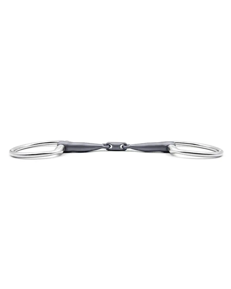 Fager Maja to lekkie, podwójnie łamane wędzidło z tytanu, zaprojektowane z myślą o koniach wrażliwych, sztywnych i niestabilnych w kontakcie. Łącznik został zaprojektowany tak, aby leżał płasko na języku, eliminując ryzyko nacisku na podniebienie. Przeguby łamią się na zewnątrz języka, co zmniejsza nacisk w jego centralnej części, zapewniając równomierne rozłożenie siły i spójny kontakt z pyskiem konia. To doskonały wybór, jeśli Twój koń: