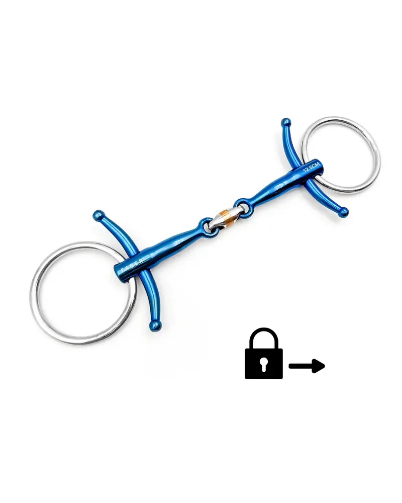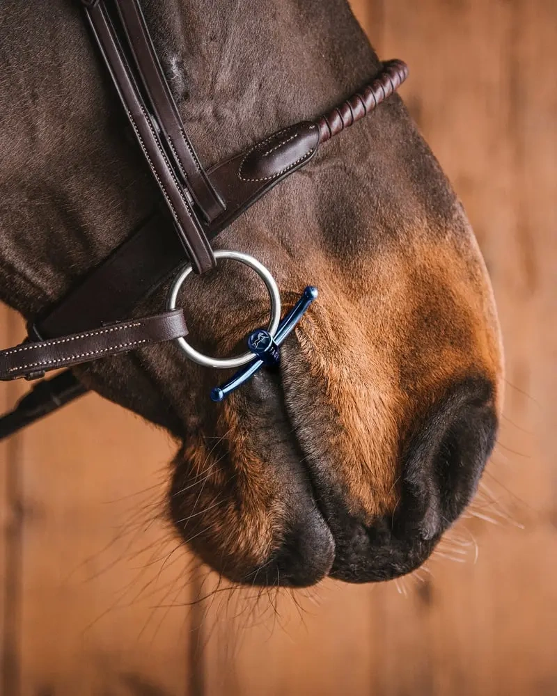 System Front Lock działa niezależnie od kąta działania wodzy – nie tylko przy kontakcie „na wprost”, ale także w sytuacjach, gdy wodze działają z góry lub z dołu, jak np. podczas skoku czy w czasie rozciągania szyi przez konia. To oznacza, że wędzidło pozostaje stabilne i „zamknięte” tam, gdzie inne systemy blokady mogłyby się rozłączyć, co daje jeźdźcowi większą pewność i precyzję działania.
