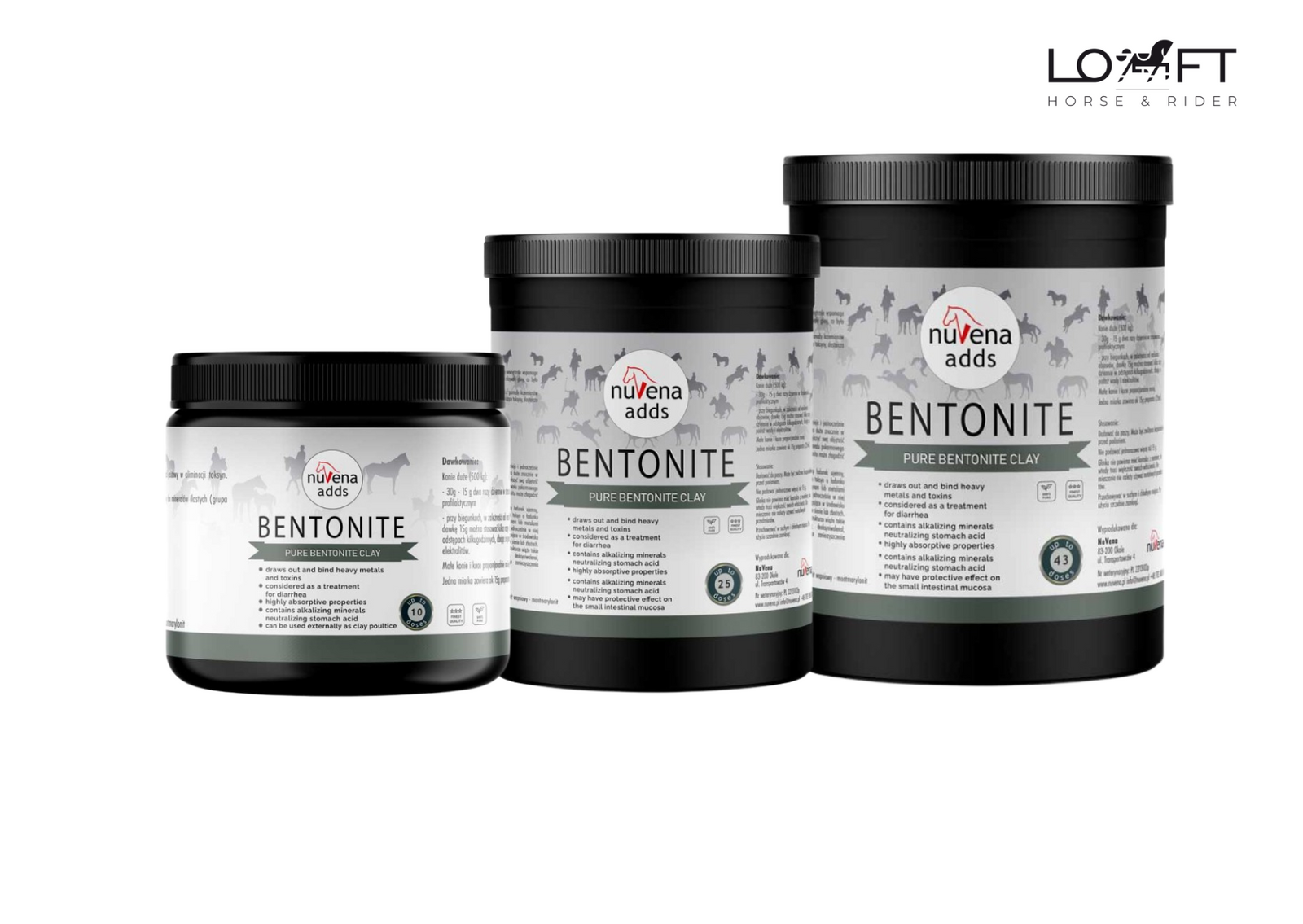 Naturalny suplement dla koni oparty na bentonicie wapniowym, którego głównym składnikiem jest montmorylonit – minerał ilasty należący do grupy smektytów. Charakteryzuje się on niezwykłą zdolnością wiązania toksyn, pochłaniania wody i uwalniania do organizmu wartościowych minerałów. Dzięki temu bentonit znajduje zastosowanie zarówno w profilaktyce, jak i w terapii wspomagającej przy zaburzeniach trawienia, biegunkach, zatruciach oraz przy obciążeniu wątroby.