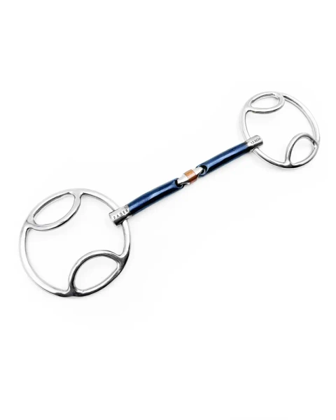 Sweet Iron (oksydowane żelazo) to materiał, który w trakcie użytkowania ulega naturalnemu procesowi utleniania, tworząc powierzchnię o specyficznym, „słodkim” smaku. Ten smak znacząco zwiększa wydzielanie śliny i zachęca konie do aktywnego poszukiwania kontaktu z ręką jeźdźca.