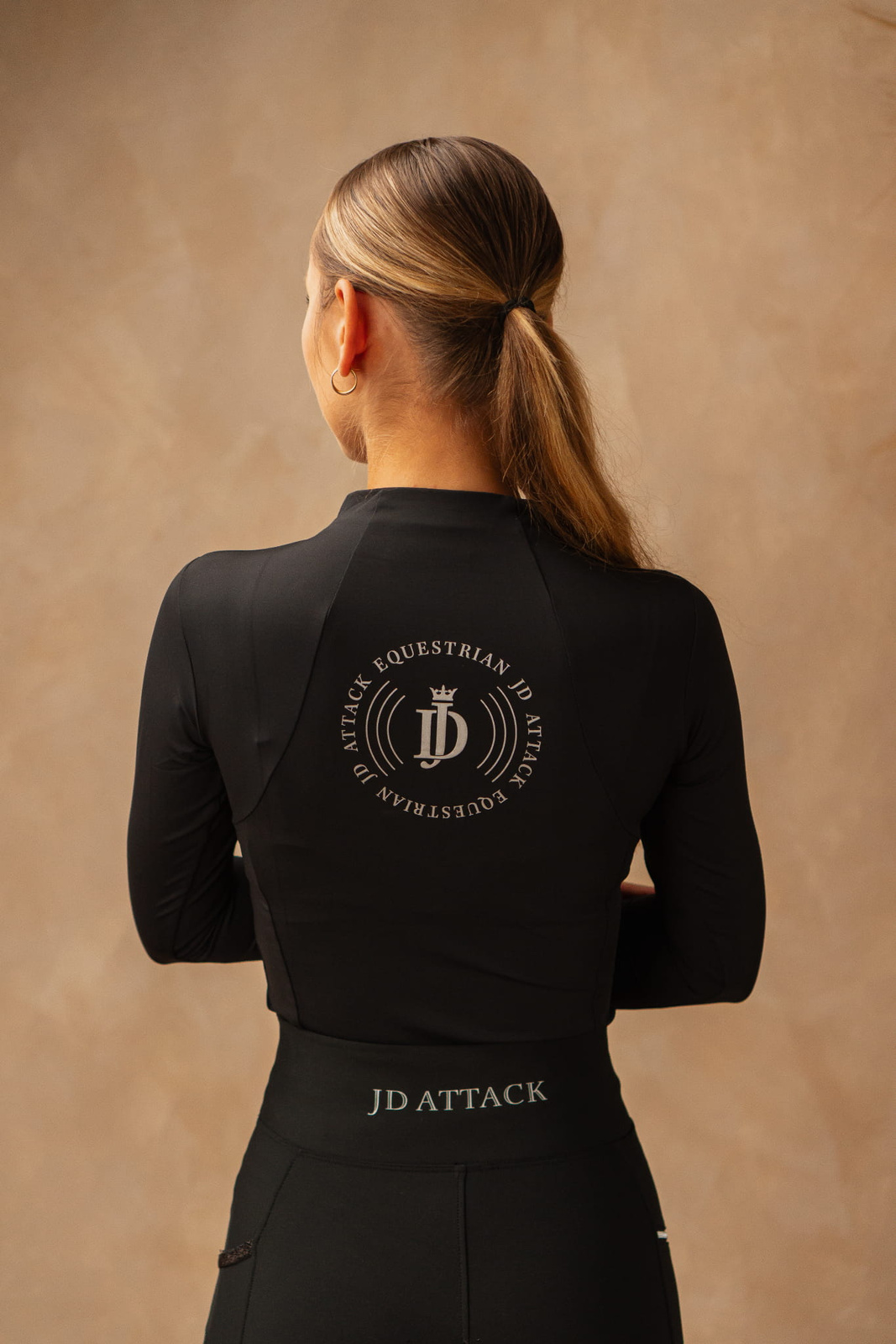 Bluzka techniczna wykonana z wysokiej jakości materiału technicznego, który zapewnia pełną oddychalność i elastyczność, dzięki czemu skóra pozostaje sucha, a ruchy w siodle czy podczas pracy w stajni nie są w żaden sposób ograniczone. To odzież zaprojektowana z myślą o wymagających jeźdźcach – lekka, komfortowa i trwała.