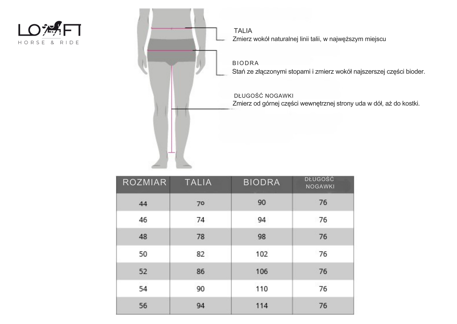 • Bryczesy te wyróżniają się sportowym, a jednocześnie modnym krojem inspirowanym klasycznymi spodniami jeansowymi.