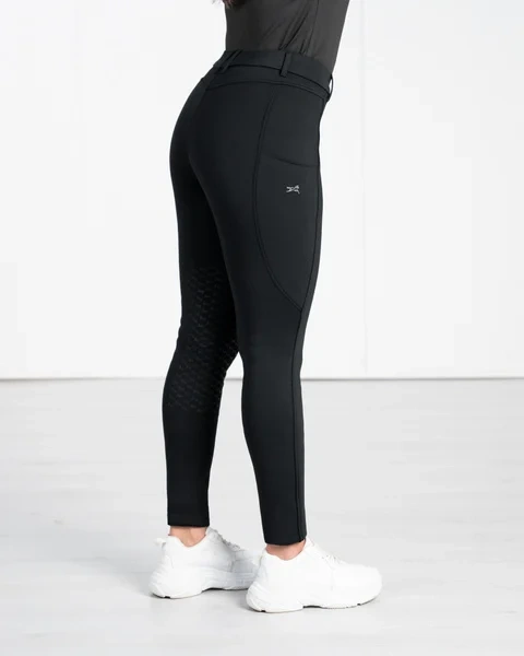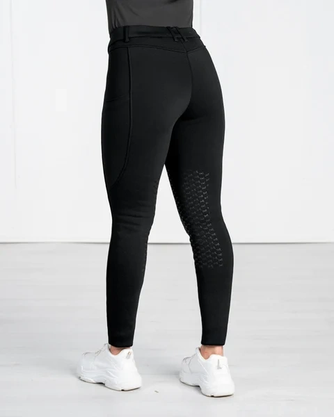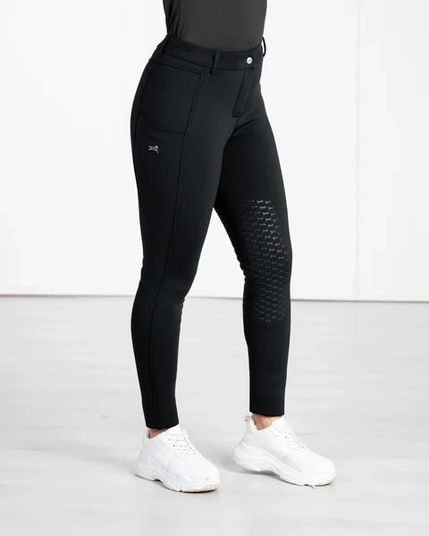 Posiadają średni stan, zamek błyskawiczny z przodu i klasyczne szlufki na pasek, a nowoczesny krój gwarantuje elegancki wygląd zarówno podczas treningu, jak i długiego dnia w stajni.