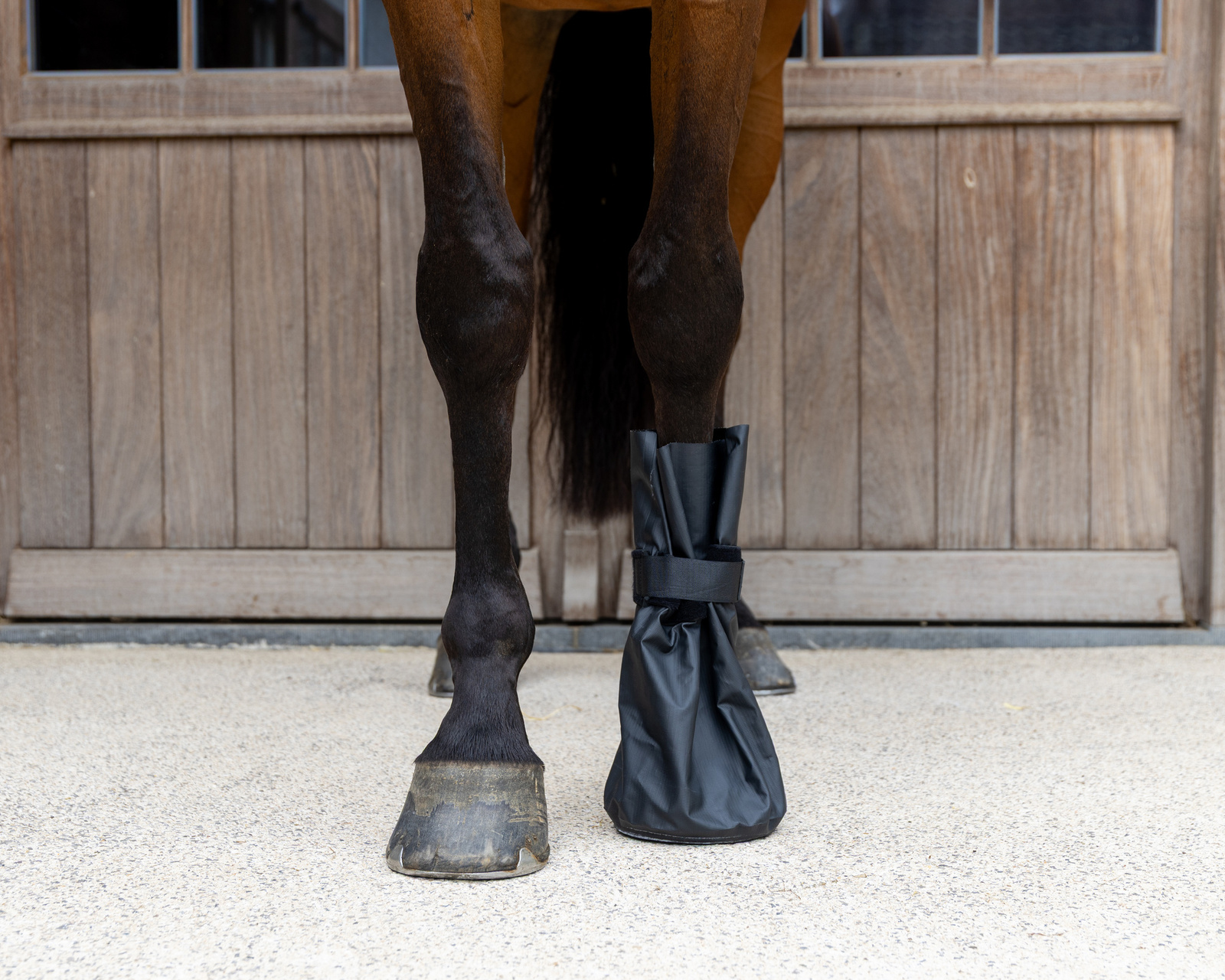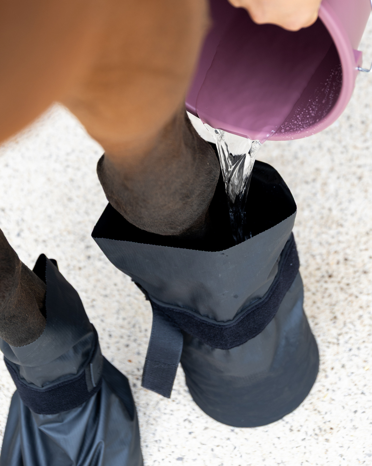 • Rozwiązanie wielofunkcyjne, wspierające konia w wielu codziennych i awaryjnych sytuacjach: od ochrony i utrzymania kopyta w czystości, przez zabezpieczenie opatrunków, aż po skuteczne chłodzenie kopyta i dolnej części kończyny po treningu.