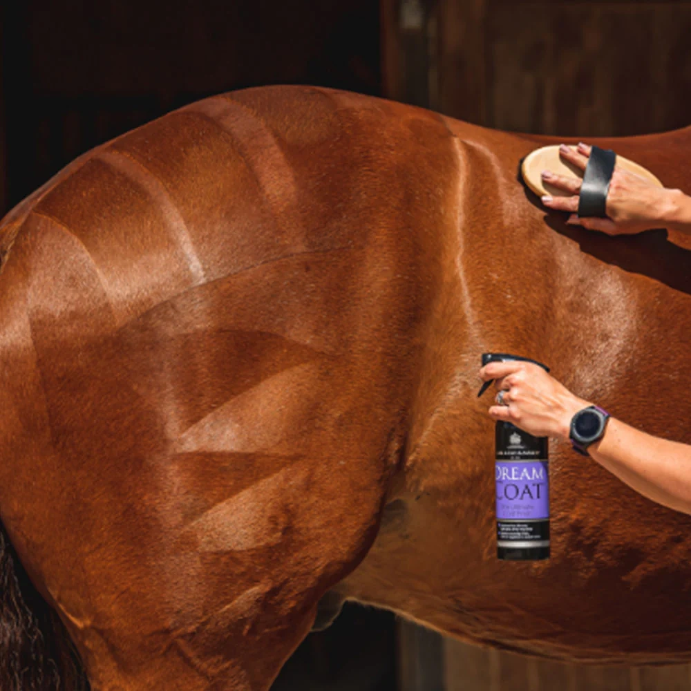 Dreamcoat może być stosowany zarówno na mokrą, jak i suchą sierść. Doskonale sprawdza się również na grzywie i ogonie – spryskane włosy stają się błyszczące i łatwiejsze do zaplatania.