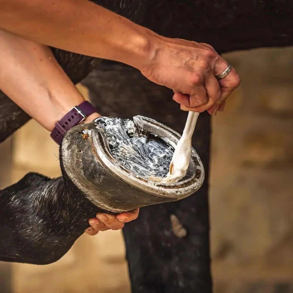 Regularne stosowanie zapobiega pęknięciom, rozwarstwieniom i osłabieniu struktury kopyta, wspierając jego naturalną elastyczność i zdrowy wygląd.