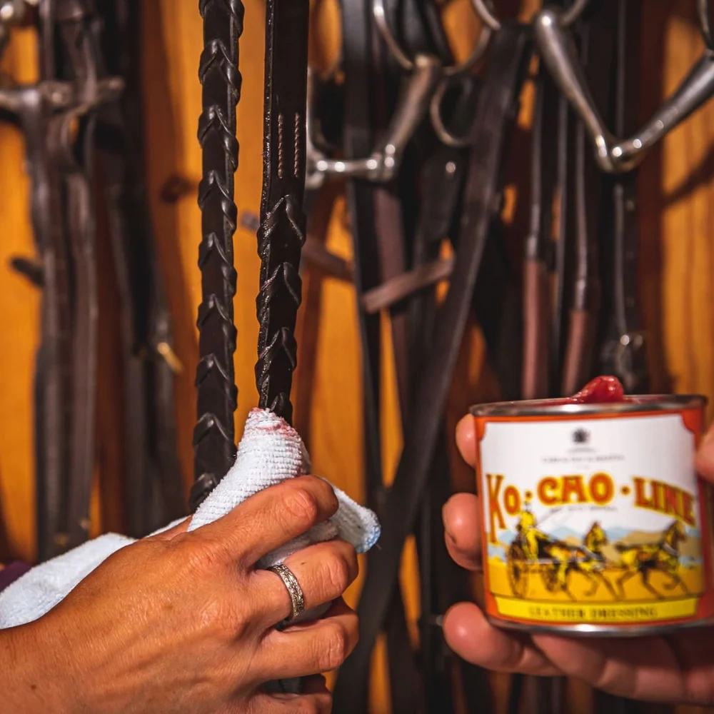 Gęsty, różowy smar opracowany specjalnie do konserwacji, renowacji i ochrony skórzanego sprzętu jeździeckiego.