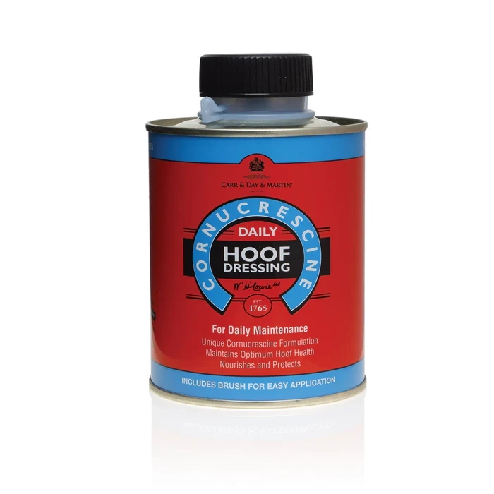 Preparat należy nakładać na czyste i suche kopyta, rozprowadzając równomiernie na ścianę, a w razie potrzeby także na podeszwę i strzałkę. W przypadku kopyt uszkodzonych warto połączyć jego stosowanie z Cornucrescine Original Hoof Ointment, aby wspomóc proces wzrostu i rekonstrukcji. Dla pełnego efektu profilaktycznego dobrze jest stosować go razem z suplementem Cornucrescine Daily Hoof Supplement, który wspiera kopyta „od wewnątrz”.