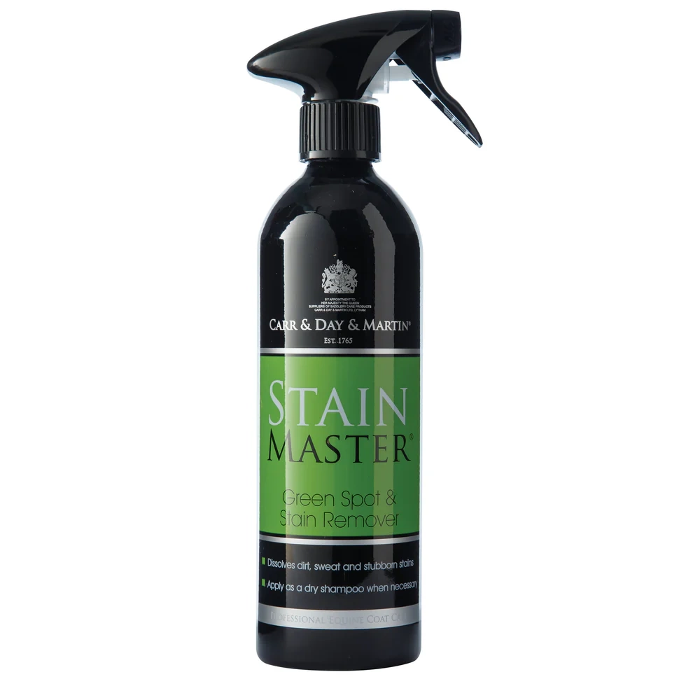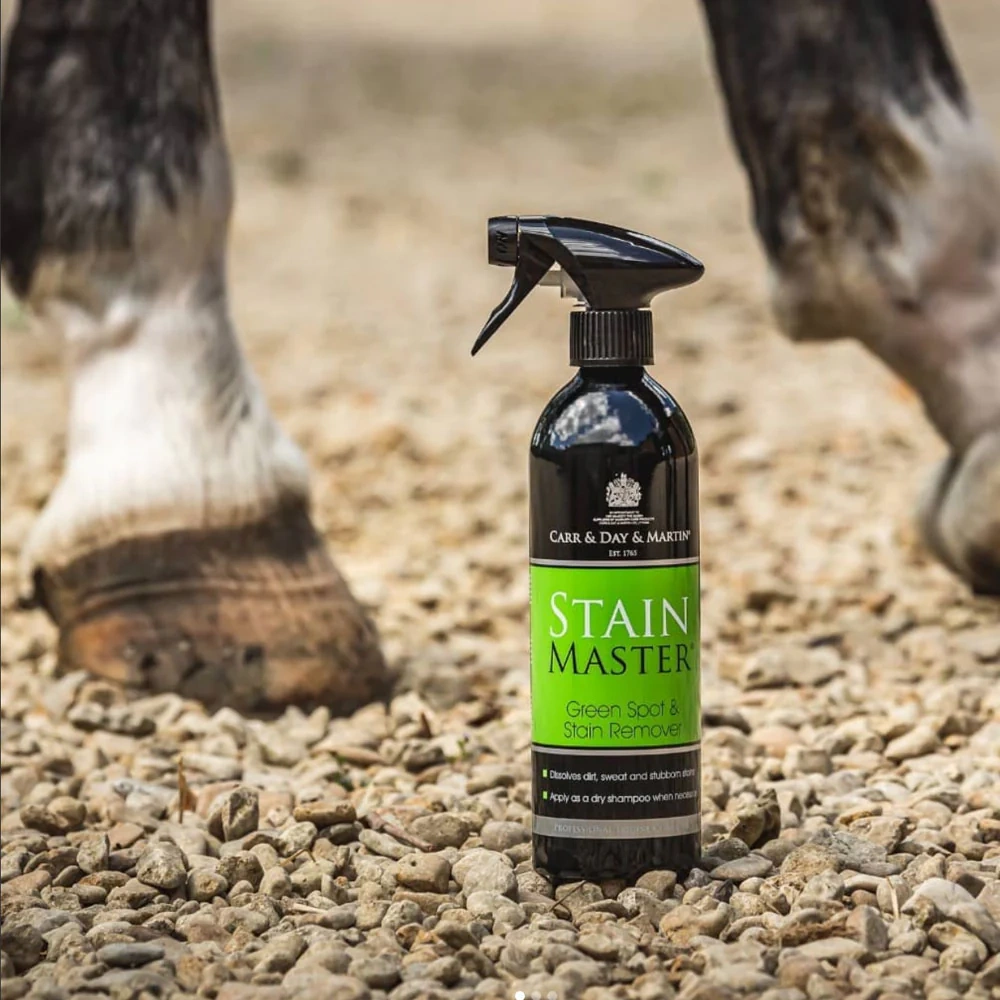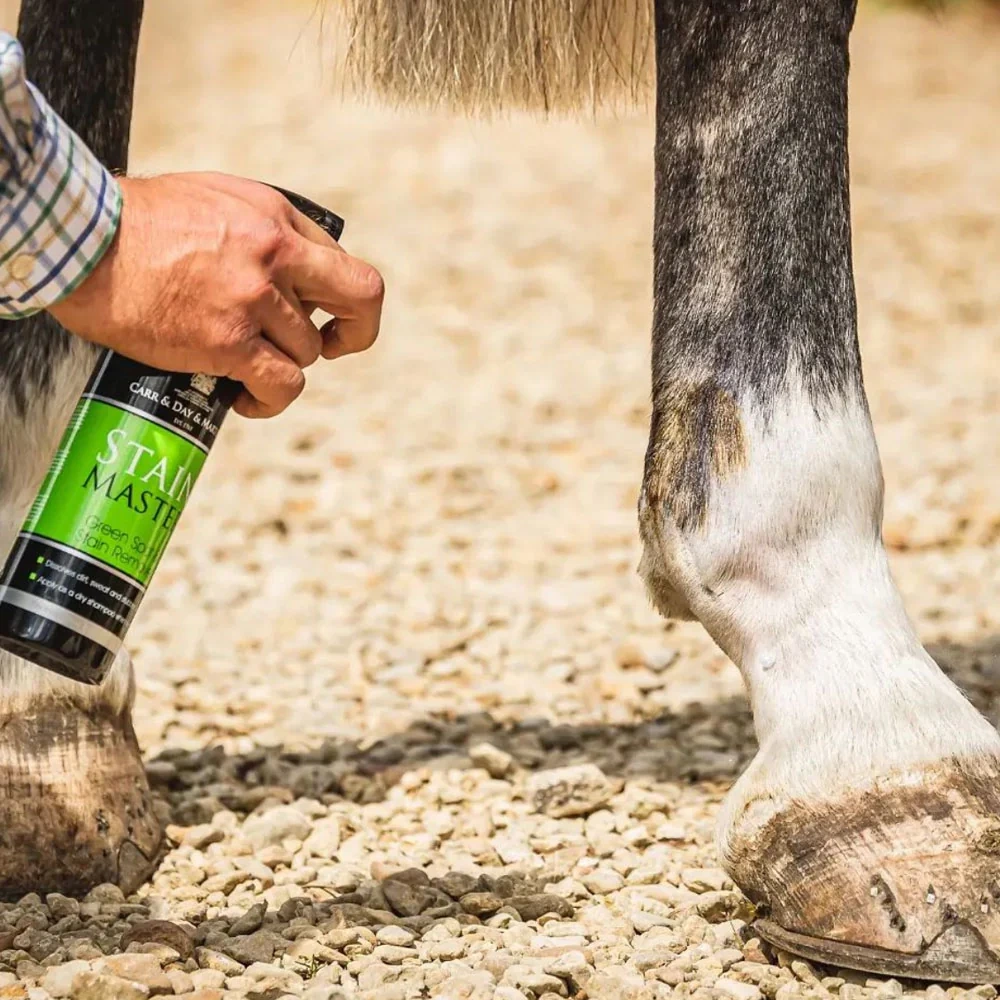 Stain Master jest niepokonany w usuwaniu plam stajennych, trawy, obornika i moczu. Działa natychmiast – wystarczy spryskać zabrudzone miejsce, przetrzeć wilgotną gąbką lub ściereczką, a następnie wyszczotkować.
