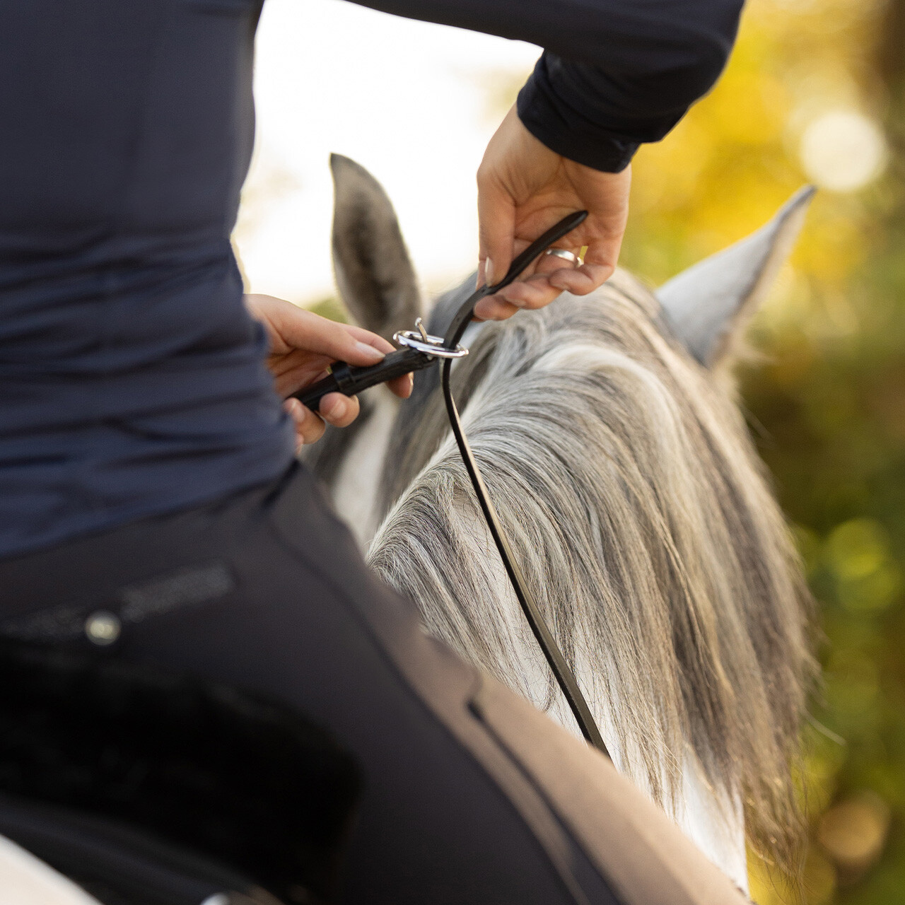 Materiał: skóra naturalnaProdukt przeznaczony wyłącznie do pracy z koniem i jazdy rekreacyjnej/treningowej. Nie stosować jako jedynego narzędzia kontroli u koni młodych, silnych lub trudnych bez wcześniejszego przygotowania. Regularnie sprawdzać stan skóry i okuć — w przypadku uszkodzeń nie używać. Przechowywać w suchym miejscu, konserwować preparatami do skóry.