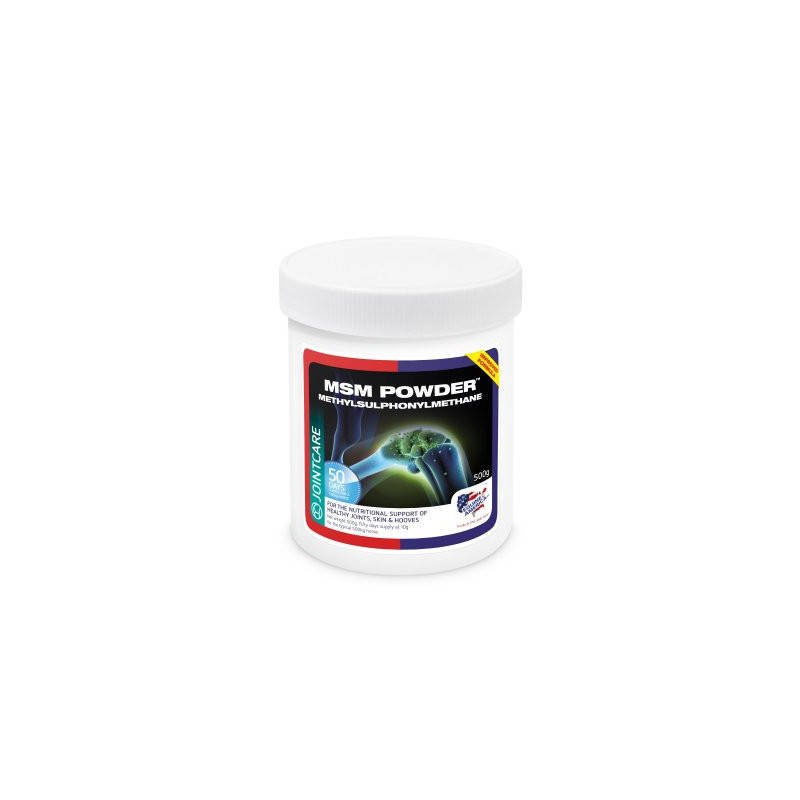 Głównym składnikiem jest organiczna forma siarki, która pełni kluczową rolę w procesach odbudowy tkanek łącznych, chrząstki stawowej, kolagenu oraz struktur skóry, kopyt i włosów. MSM wspiera syntezę kolagenu, działa silnie przeciwzapalnie i przeciwbólowo, poprawiając komfort ruchu koni z dolegliwościami stawowymi oraz po urazach. Wspomaga także naturalne mechanizmy obronne organizmu, odgrywa istotną rolę w produkcji aminokwasów siarkowych (metionina, cysteina) oraz enzymów, glutationu i przeciwciał.