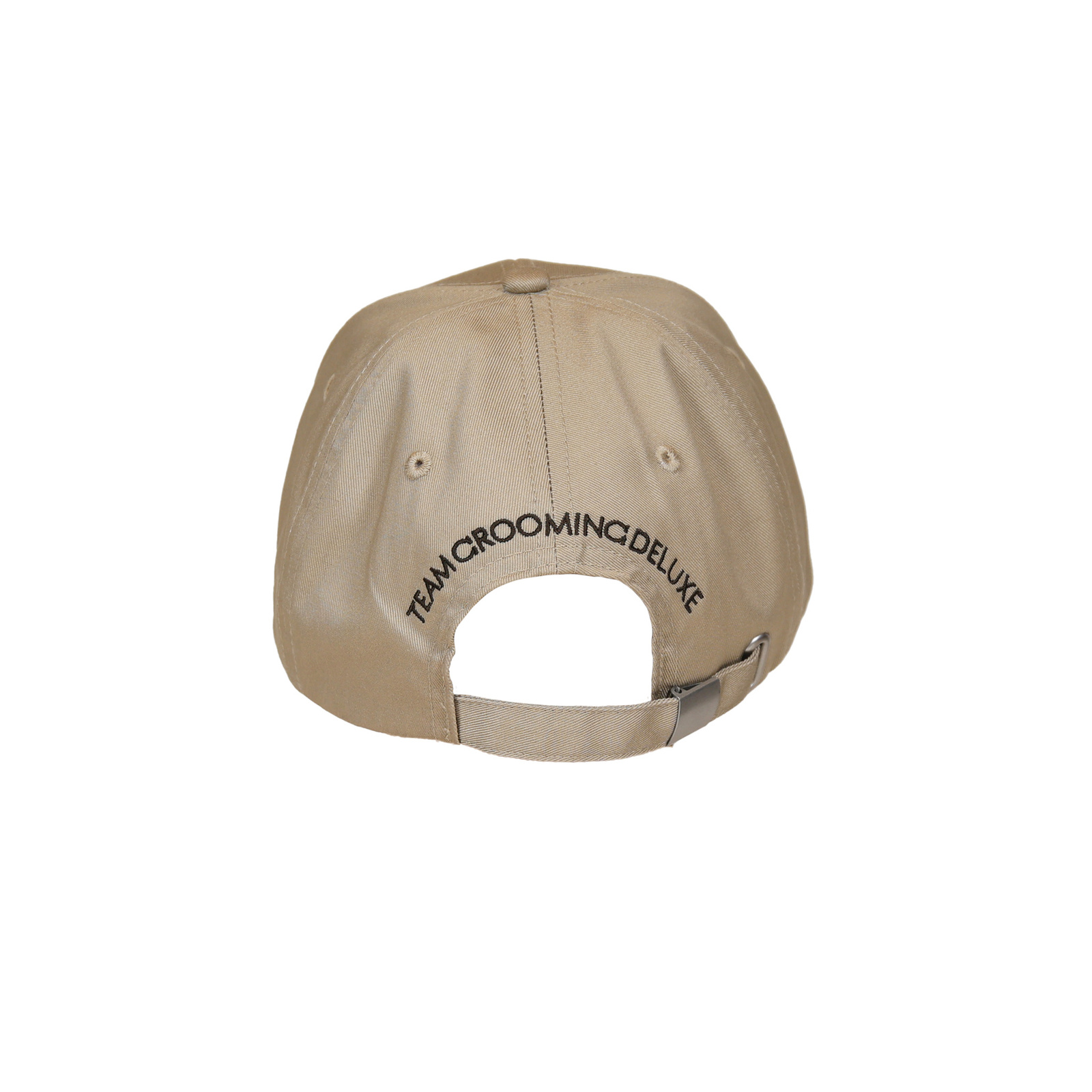 Czapka wyróżnia się haftem logo Grooming Deluxe z przodu oraz napisem "Team Grooming Deluxe" z tyłu.