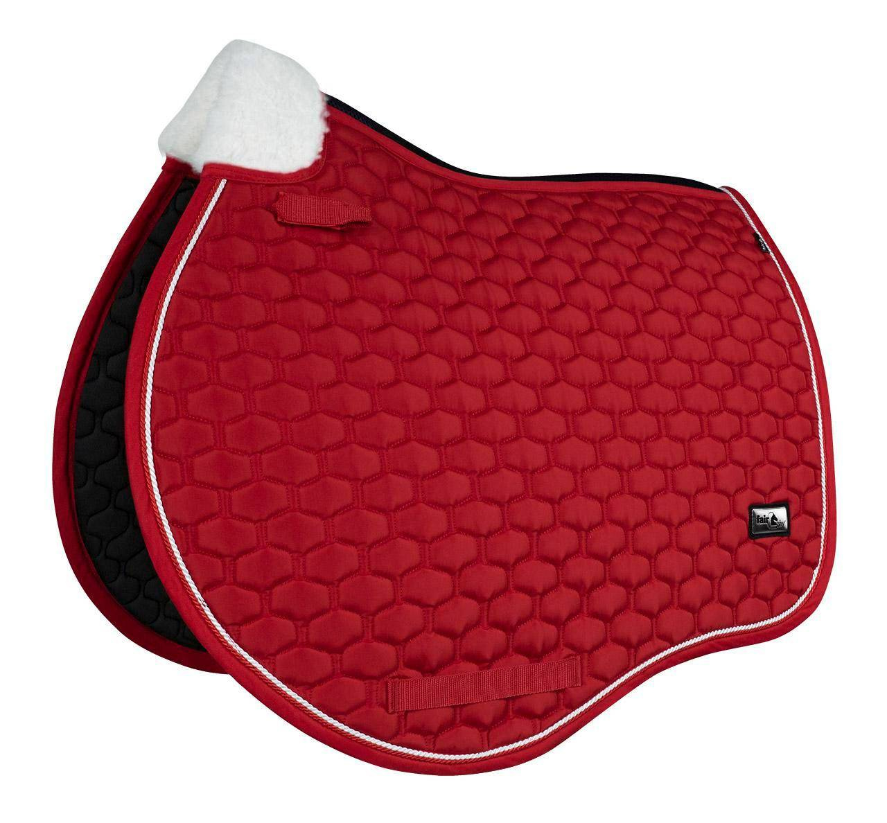 • Anatomiczne ukształtowanie pozwala na lepsze dopasowanie się do grzbietu konia. Podszyty oddychającym i szybkoschnącym materiałem.