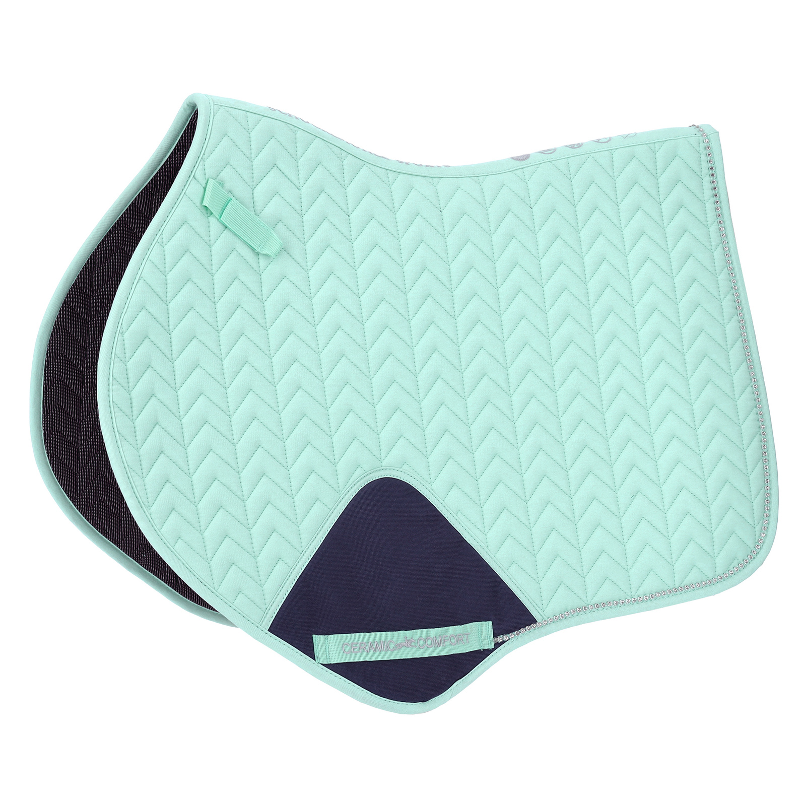 Wnętrze czapraka zostało wykończone specjalną, szybkoschnącą podszewką z materiału typu „ceramic”, który wspomaga efektywne odprowadzanie wilgoci, zapewniając koniowi maksymalny komfort podczas jazdy. Ceramika znana jest ze swoich właściwości termoregulacyjnych — odbija ciepło w głąb mięśni, co może pozytywnie wpływać na krążenie i rozluźnienie mięśni w okolicach grzbietu.