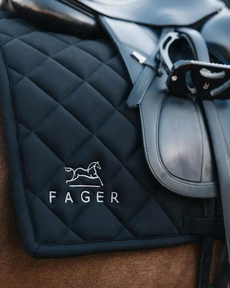 Czapraki Fager wyróżnia doskonałe dopasowanie – dzięki przemyślanej konstrukcji czaprak stabilnie utrzymuje się pod siodłem przez całą jazdę bez potrzeby stosowania dodatkowych pasków.
