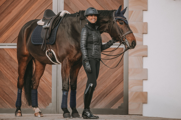 Model Glitter Stone doskonale komponuje się z nausznikami Kentucky Horsewear Wellington Glitter Band, tworząc spójny, elegancki zestaw, który sprawdzi się zarówno podczas codziennej pracy, jak i na zawodach czy sesjach zdjęciowych.
