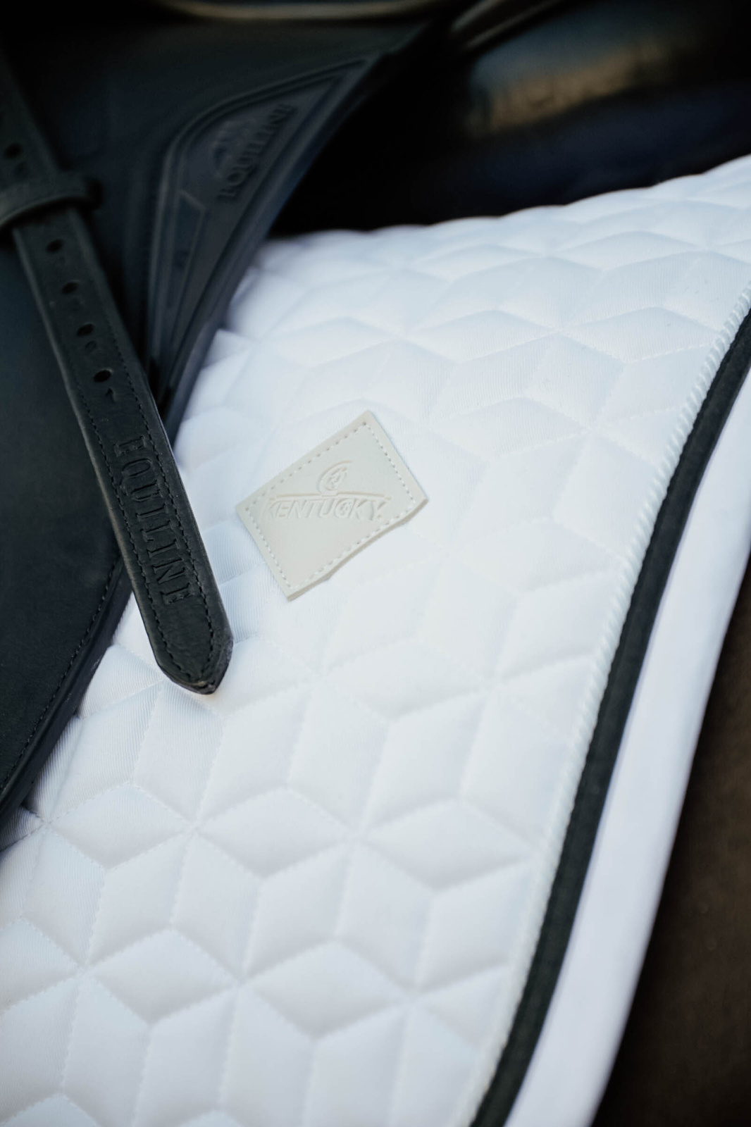 Czaprak nie posiada klasycznych pasków do siodła, zamiast tego zastosowano jedynie solidny, nylonowy pasek do popręgu, co poprawia stabilność.