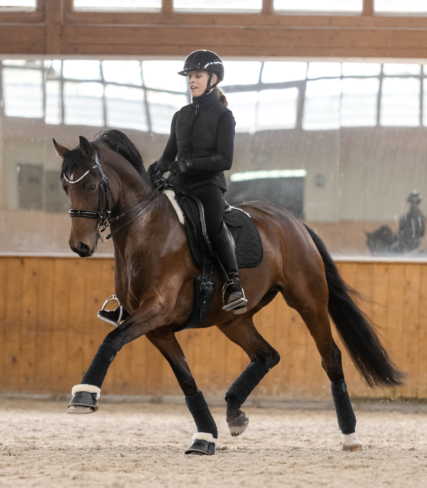 Czaprak z podszyciem z owczej wełny zapewnia doskonałe dopasowanie do grzbietu konia oraz idealne rozłożenie nacisku.