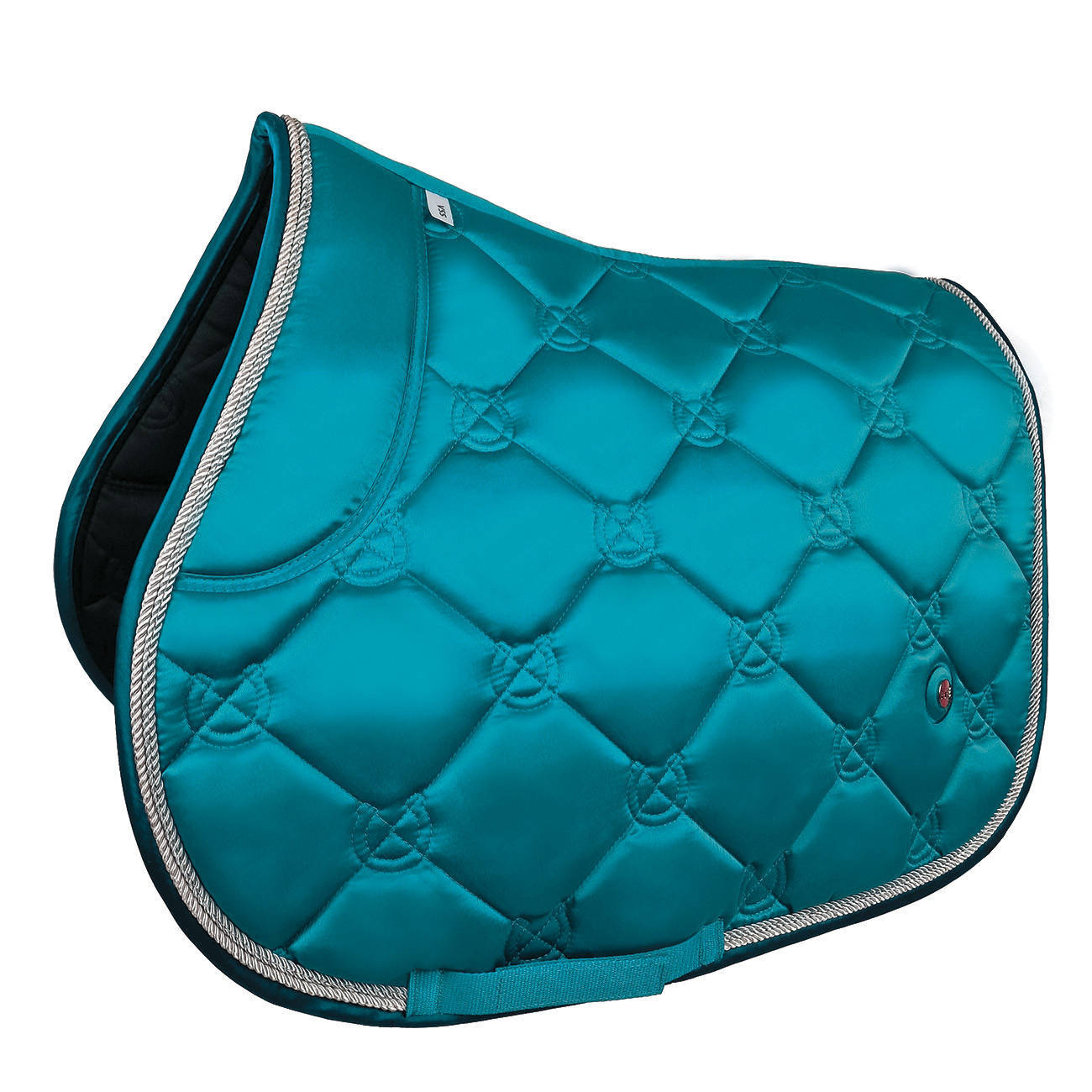 Elegancki czaprak o anatomicznym kształcie, pikowany w podkówki.