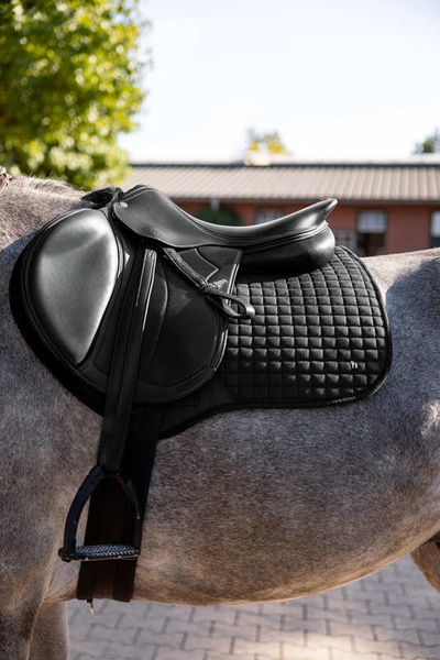 Czaprak wyposażony został w paski na rzepy, które ułatwiają stabilne przymocowanie go do przystuł, co zapobiega przesuwaniu się pod siodłem.
