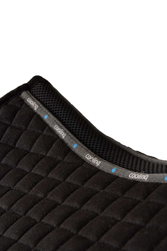 Miękka, zamszowa powierzchnia o drobnej fakturze sprawia, że czaprak idealnie leży pod siodłem i nie przesuwa się w trakcie jazdy, a oddychająca wyściółka z siateczki dba o doskonałą cyrkulację powietrza i przyjemny chłód.