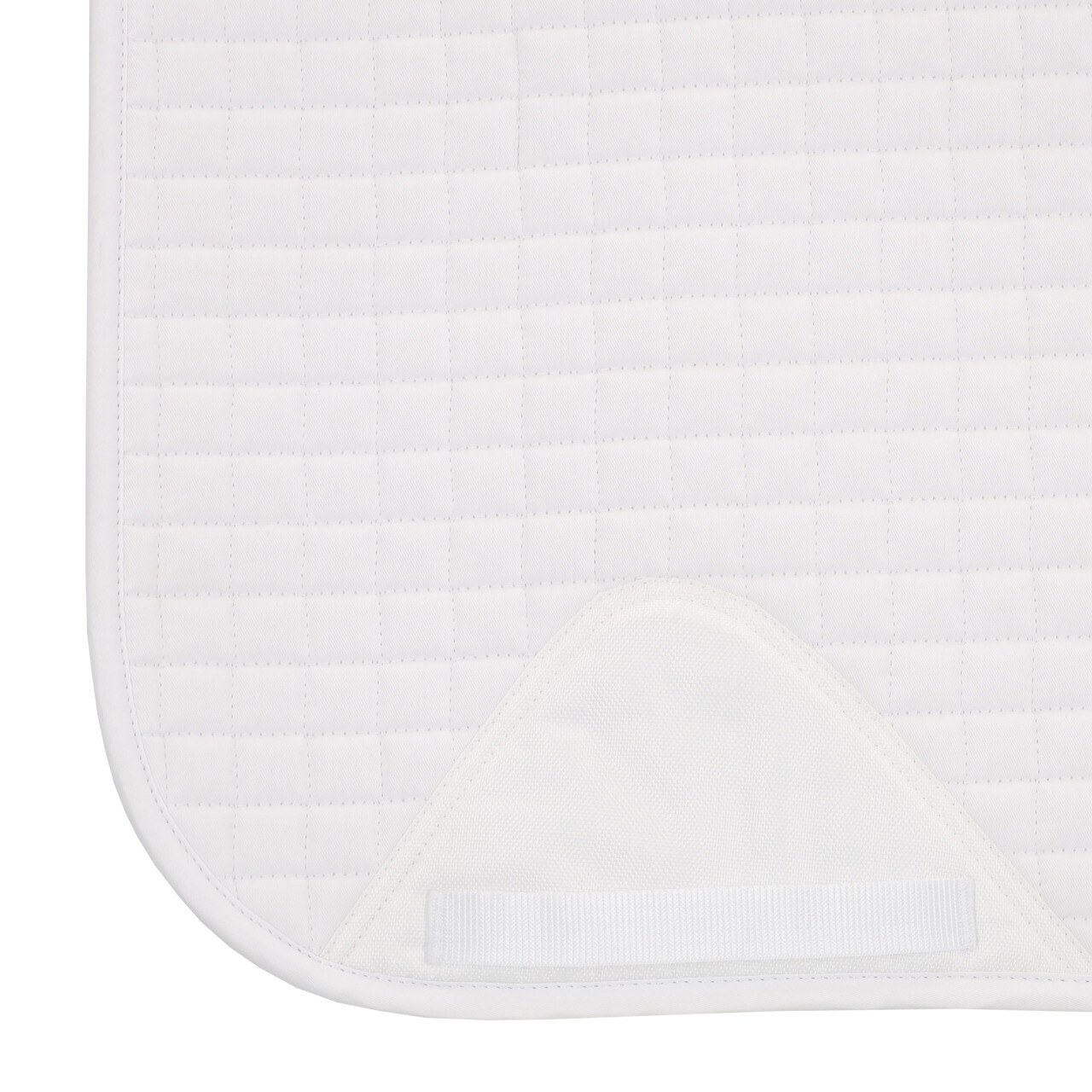 Czaprak posiada krótkie paski do D-ringów z zapięciem na rzep oraz szlufki na popręg również zapinane na rzepy. Ułatwia to szybkie i stabilne dopięcie czapraka oraz zapobiega jego przesuwaniu się podczas jazdy. Konstrukcja została przemyślana tak, aby czaprak pozostawał na swoim miejscu nawet przy dynamicznej pracy konia.