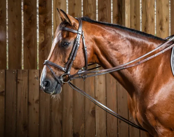 - Czarna wodza wykonana z miękkiej skóry, od spodu wykończona antypoślizgową gumą, która zapewnia lepsze trzymanie.