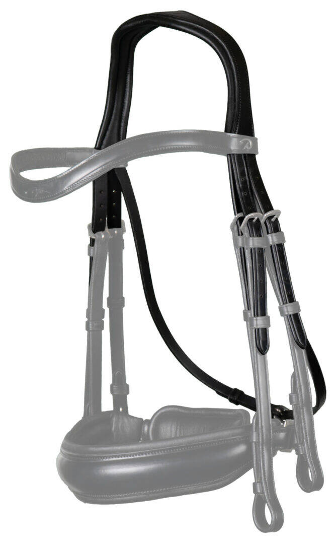 Do części potylicznej można również dobrać paski policzkowe oraz naczółek z kolekcji, aby stworzyć swoje ogłowie, idealnie pasujące do naszego konia.