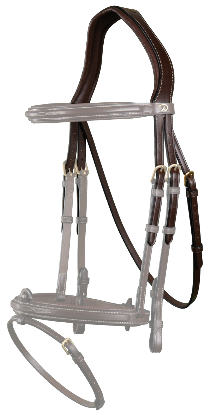 Do części potylicznej można również dobrać paski policzkowe oraz naczółek z kolekcji, aby stworzyć swoje ogłowie, idealnie pasujące do naszego konia.