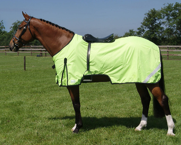 Zakrywa całego konia i można go zapiąć na klatce piersiowej za pomocą zapięć na rzepy.