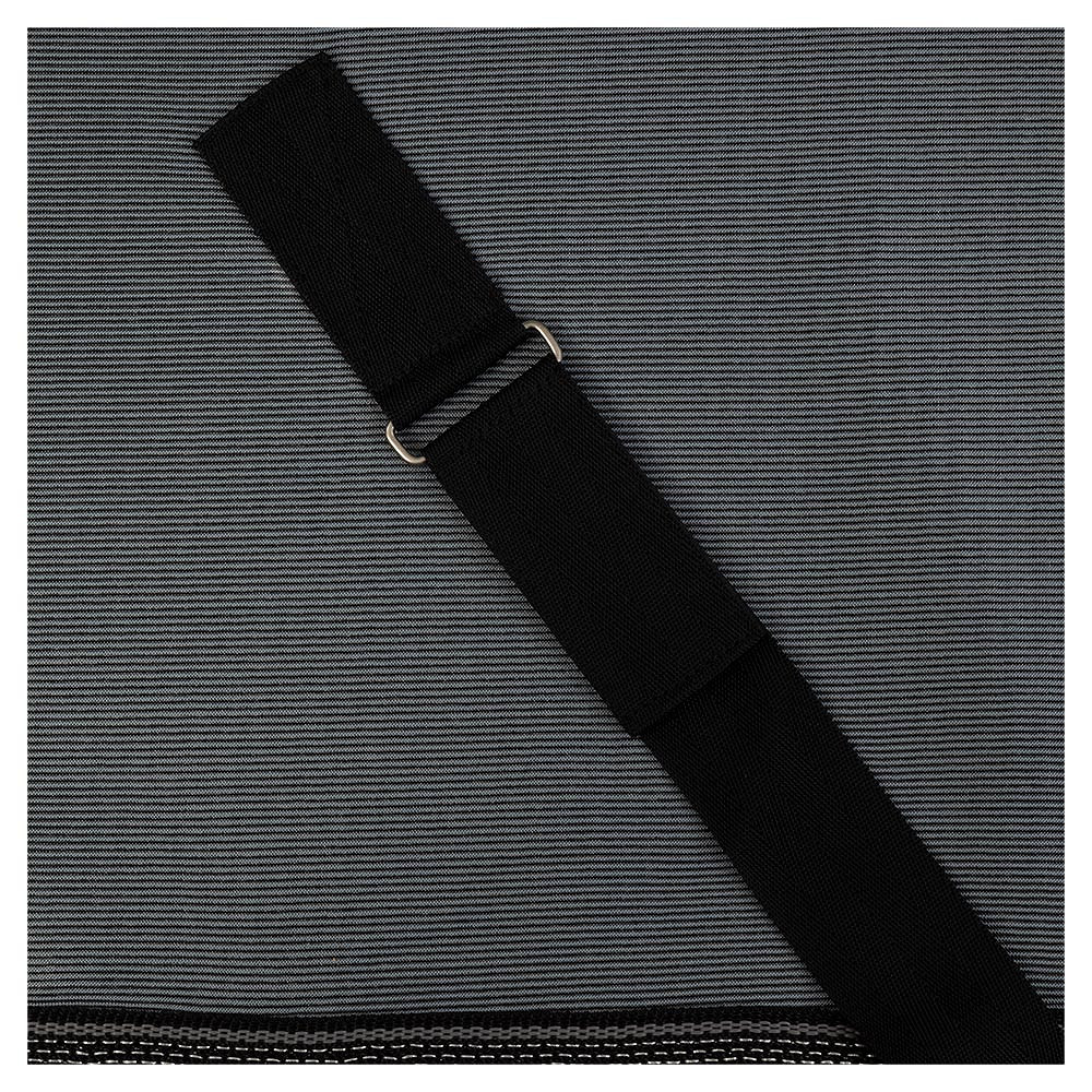 Posiada sztuczne futerko umieszczone w okolicy kłębu, które zapewnia koniowi maksymalny komfort, minimalizując ryzyko otarć i punktowego ucisku w tej wrażliwej strefie. Dodatkowo, paski ze sztucznej skóry przy zapięciach oraz ozdobne obszycie srebrną lamówką i stylowy wzór w paski nadają derce ekskluzywnego charakteru.
