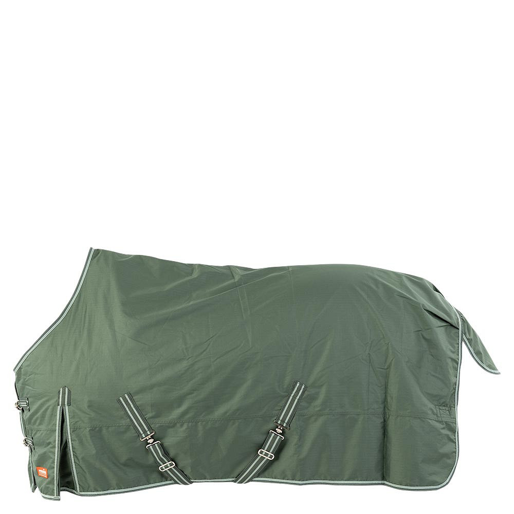 Posiada rozcięcia na łopatkach, które nie ograniczają ruchów, dwa regulowane paski na klatce piersiowej z wygodnymi klamrami i rzepami, a także regulowane pasy pod brzuchem. Elastyczne, odpinane pasy na nogi gwarantują stabilność nawet przy intensywnym ruchu na padoku. Duża, zaokrąglona klapa na ogon chroni dodatkowo przed podmuchami wiatru i deszczem, zwiększając ochronę konia.