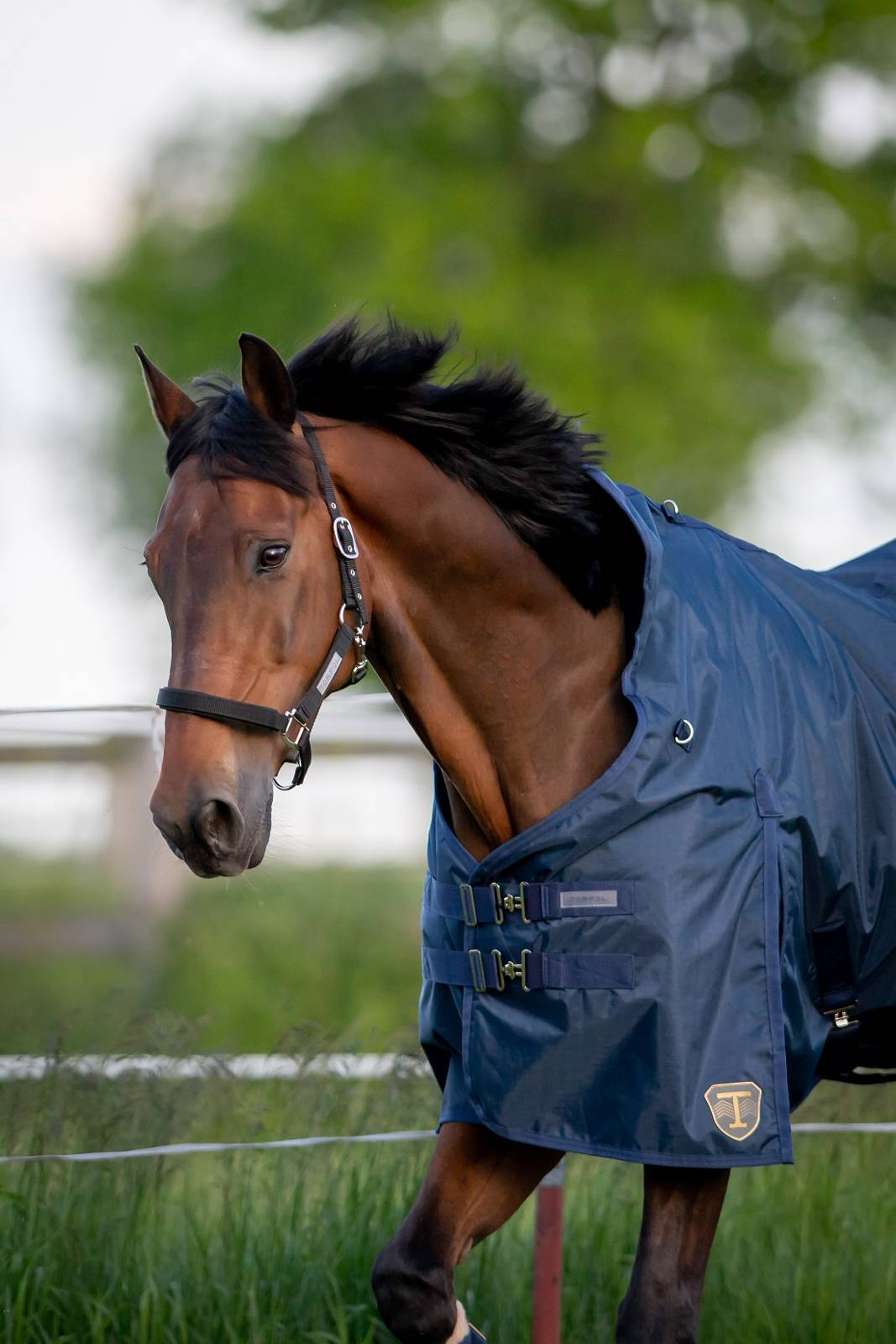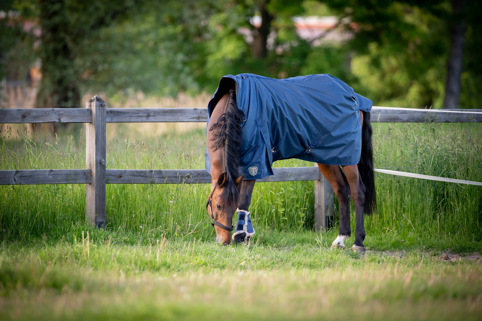 Dzięki systemowi regulowanych zapięć pod brzuch, nogi oraz paskowi pod ogon, derka jest łatwa do dopasowania do ciała konia, co zapewnia wygodę i stabilność.