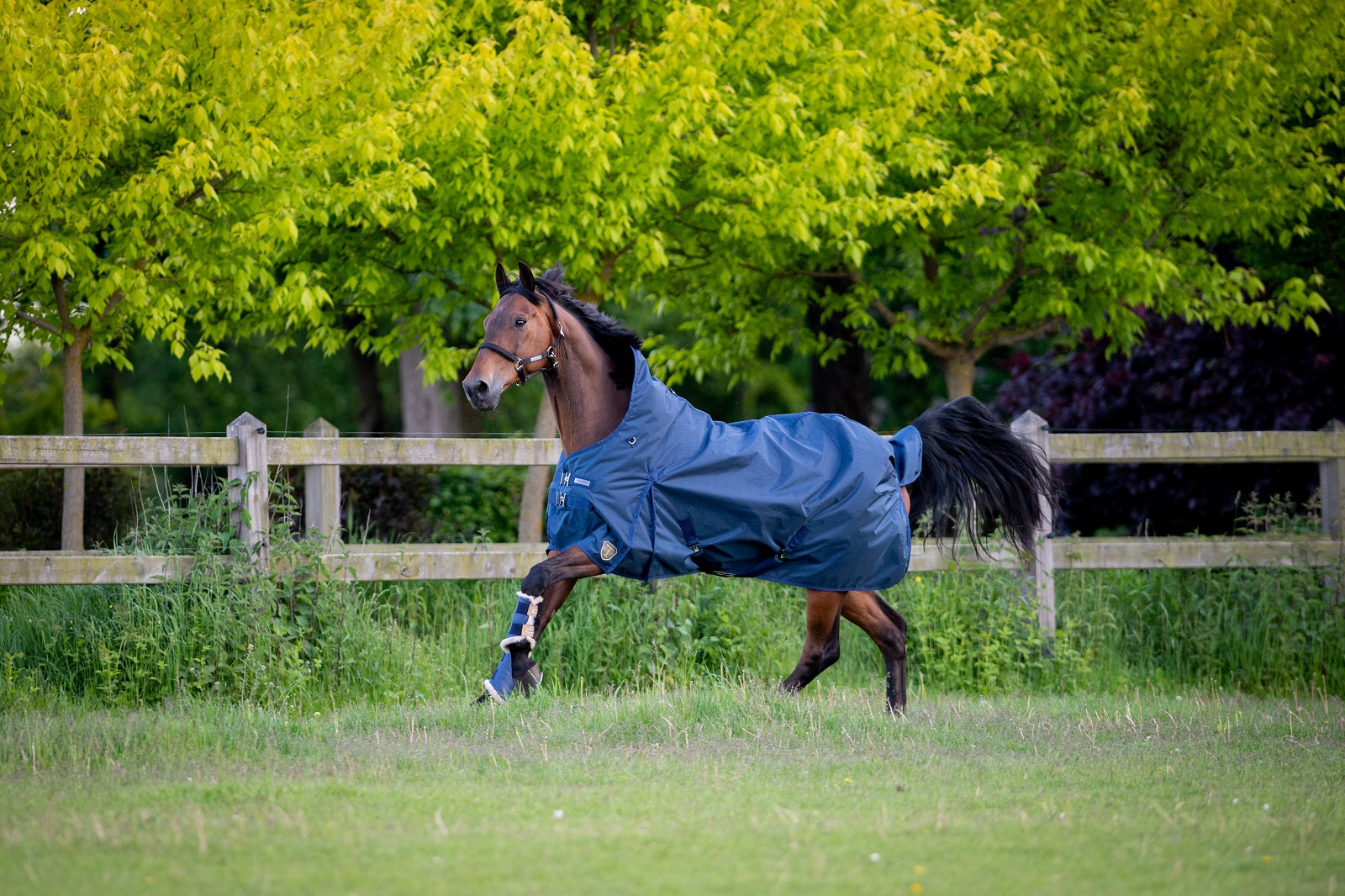 Derka posiada przedłużony kołnierz oraz dodatkowe mocowania do kaptura, co gwarantuje lepszą ochronę przed wiatrem i deszczem, a rozcięcia na łopatkach i anatomiczny krój zapewniają pełną swobodę ruchów, nie ograniczając konia podczas codziennych aktywności.