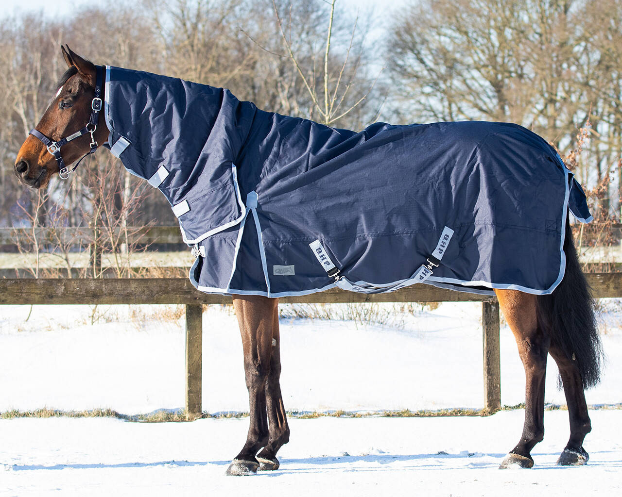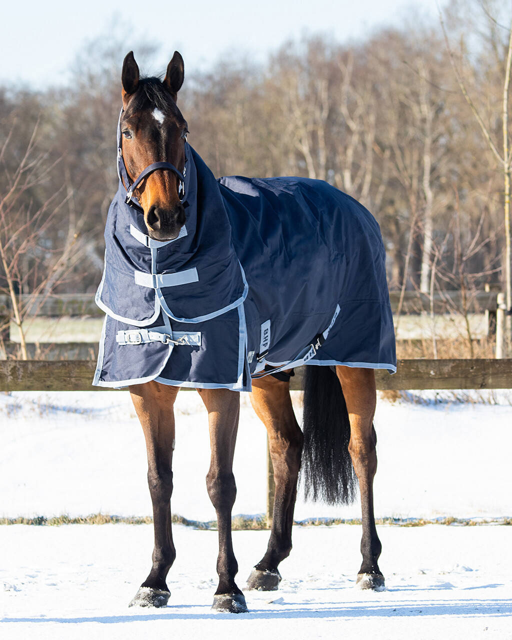 • Podstawowy model derki padokowej z wypełnieniem 300 gram. Derka ma nieodpinany kaptur, który zapewnia dodatkową ochronę przed deszczem i zimnem.
