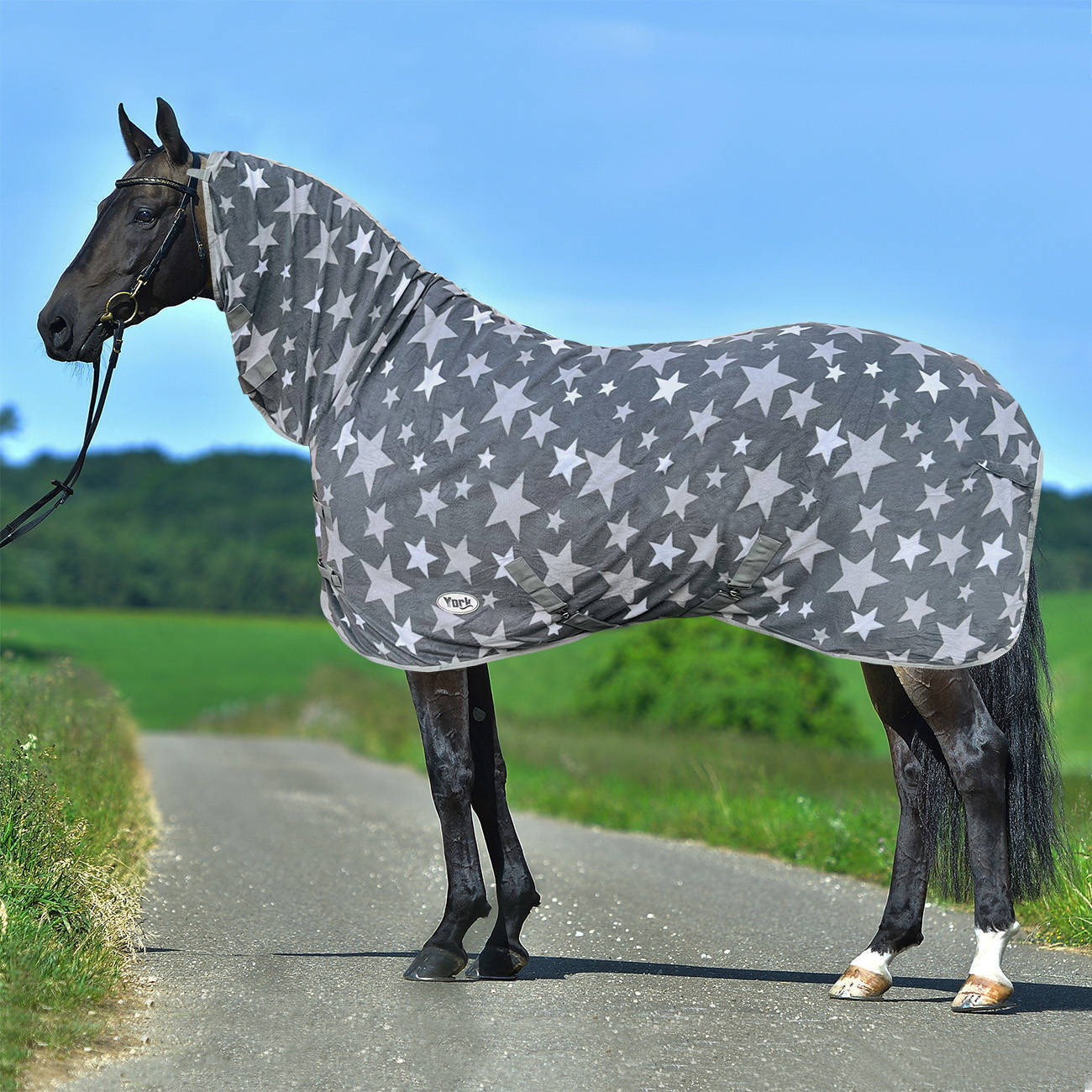 • Derka polarowa z kapturem, ozdobiona gwiazdkami w kontrastowym kolorze.