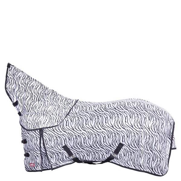 Idealna letnia derka chroniąca konia przed muchami i gzami, na pastwisko, na padok i do stajni. Czarno-biały wzór chroni w naturalny sposób przed owadami - potwierdzono naukowo, że dzięki temu wzorowi konie przestają być celem dla niektórych owadów.