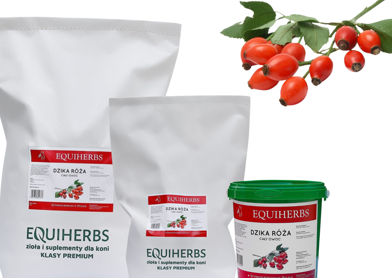 • Owoce dzikiej róży to jeden z najcenniejszych naturalnych suplementów wspierających zdrowie koni, znany przede wszystkim z bardzo wysokiej zawartości witaminy C – wielokrotnie wyższej niż w cytrusach.