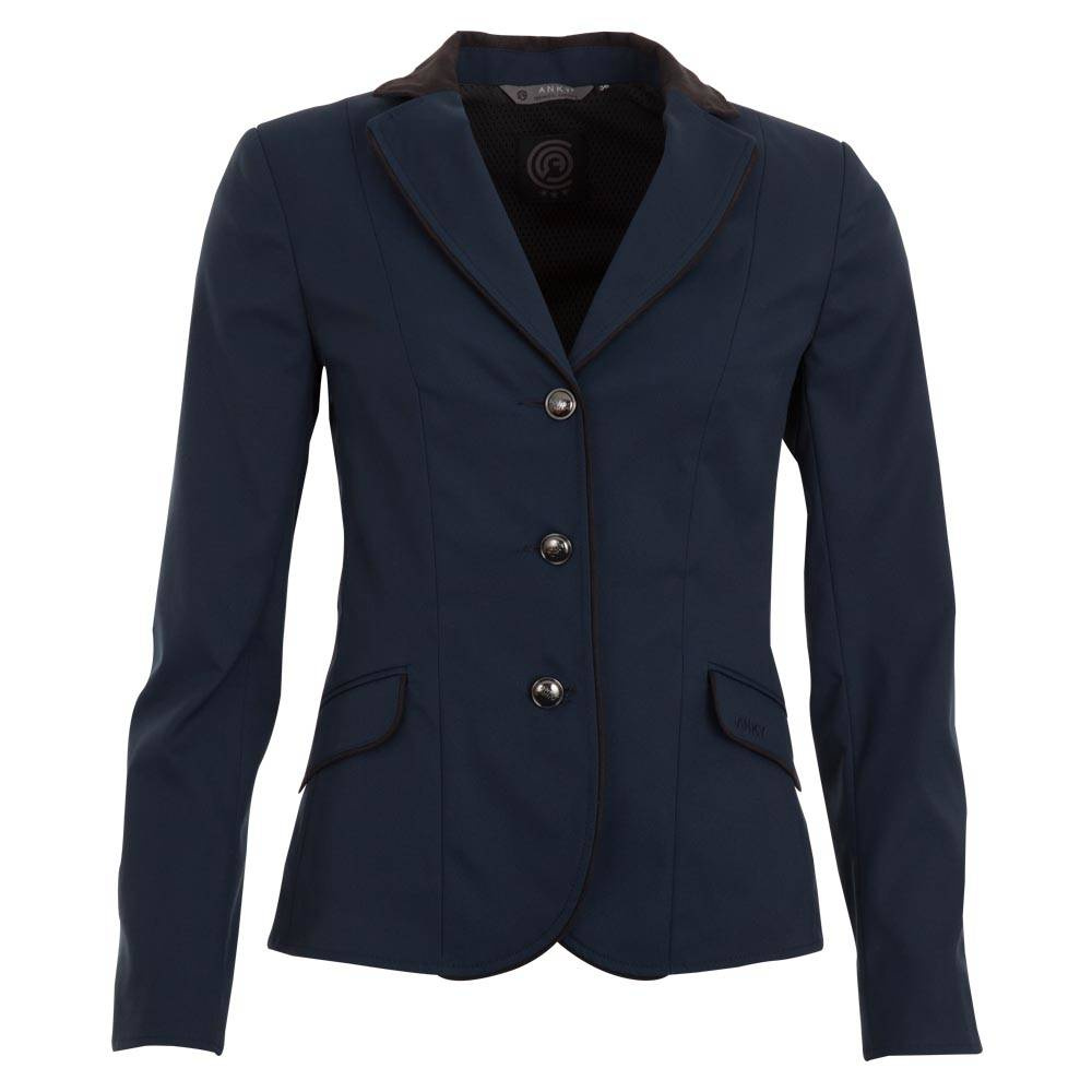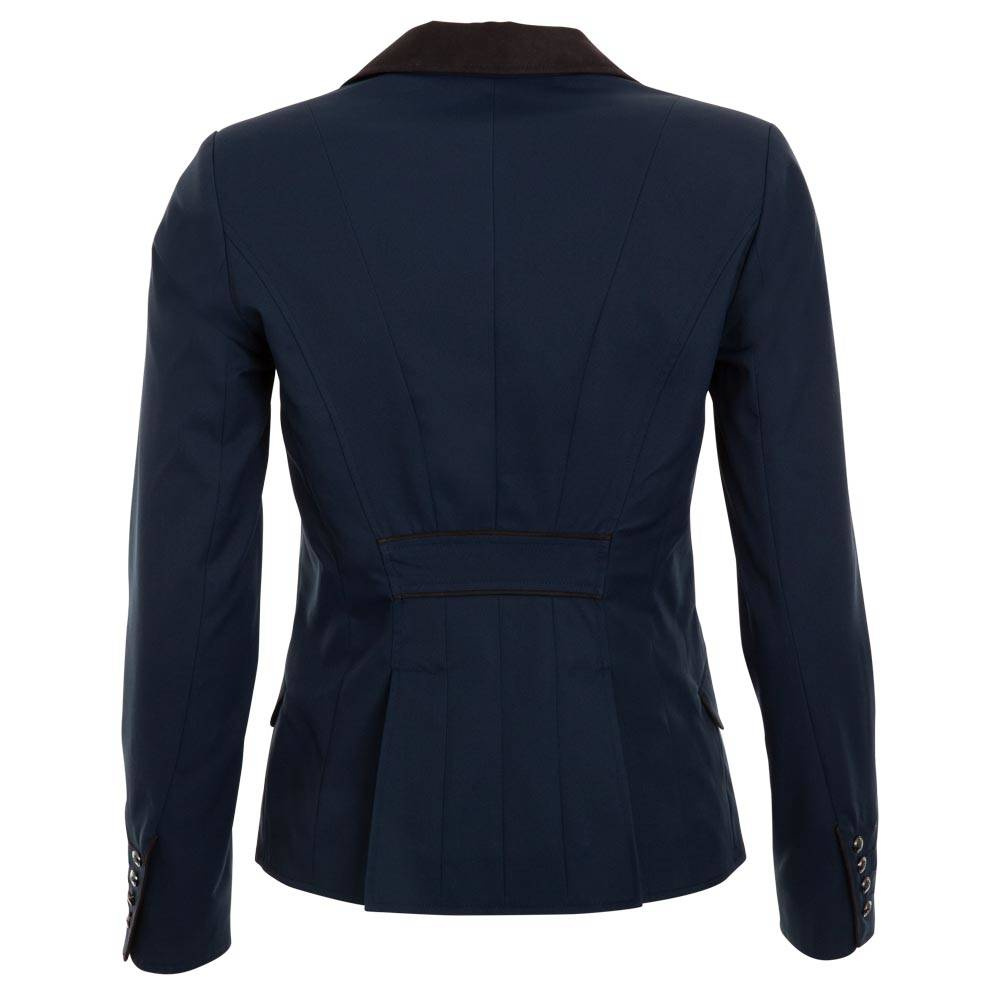Wykończony subtelną, czarną lamówką z zamszu, poprowadzoną wzdłuż klap, rozcięcia na rękawie i w pasie z tyłu.
