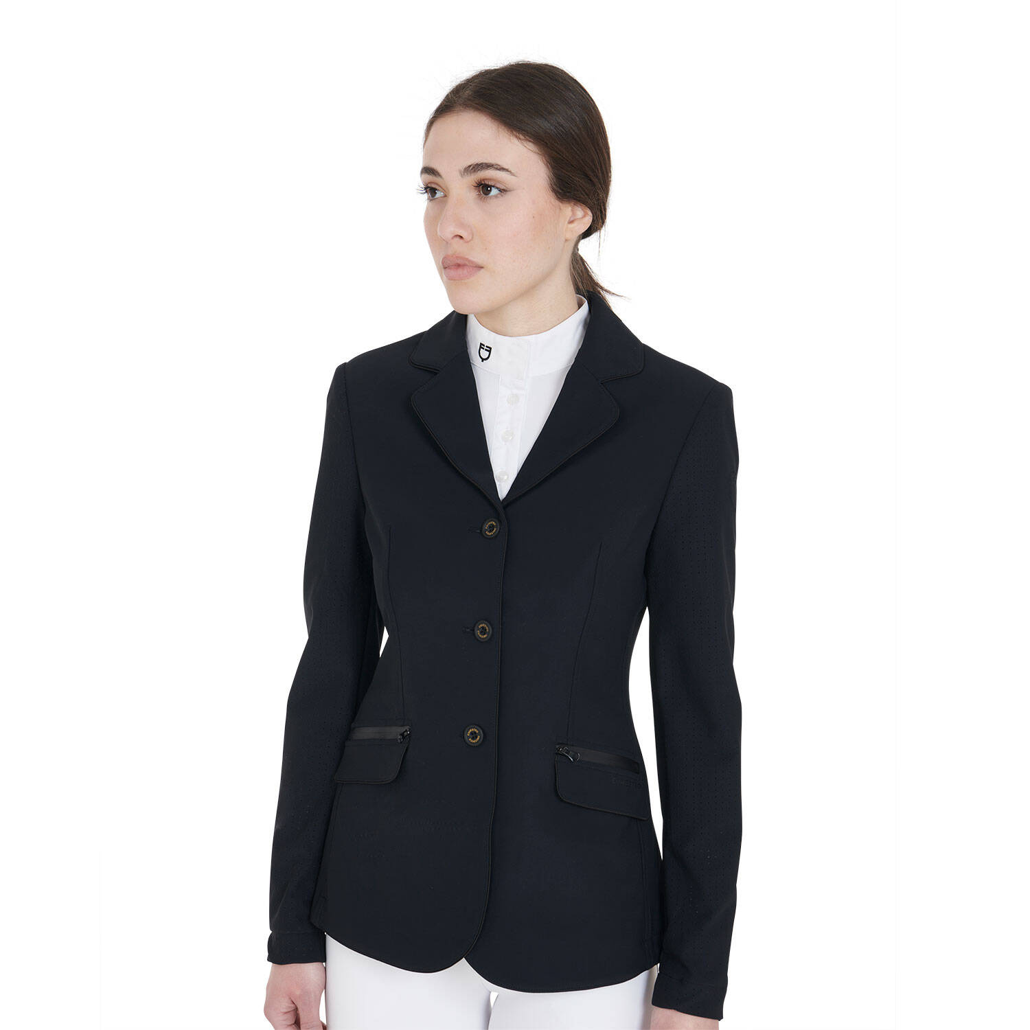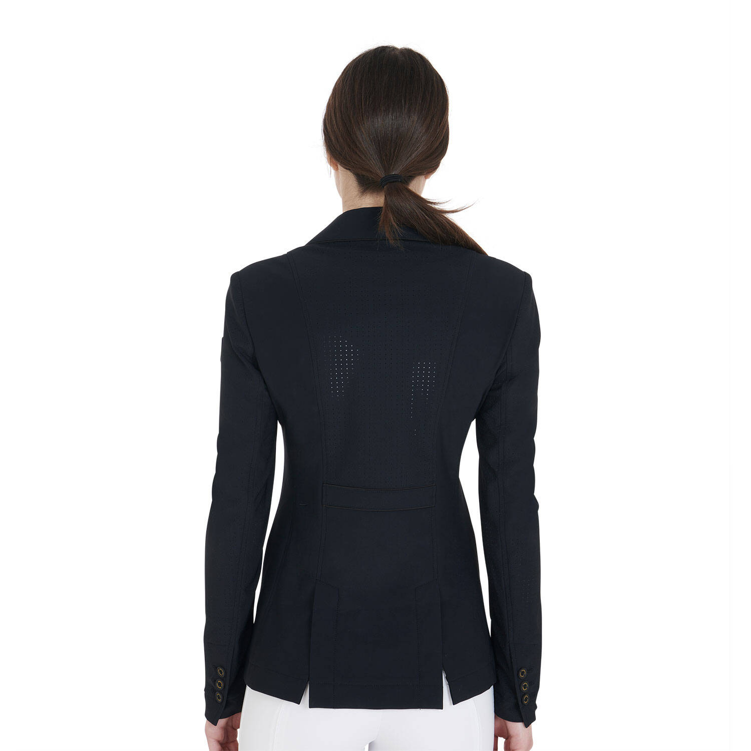 Damski frak konkursowy wykonany z oddychającego i ultralekkiego materiału technicznego.