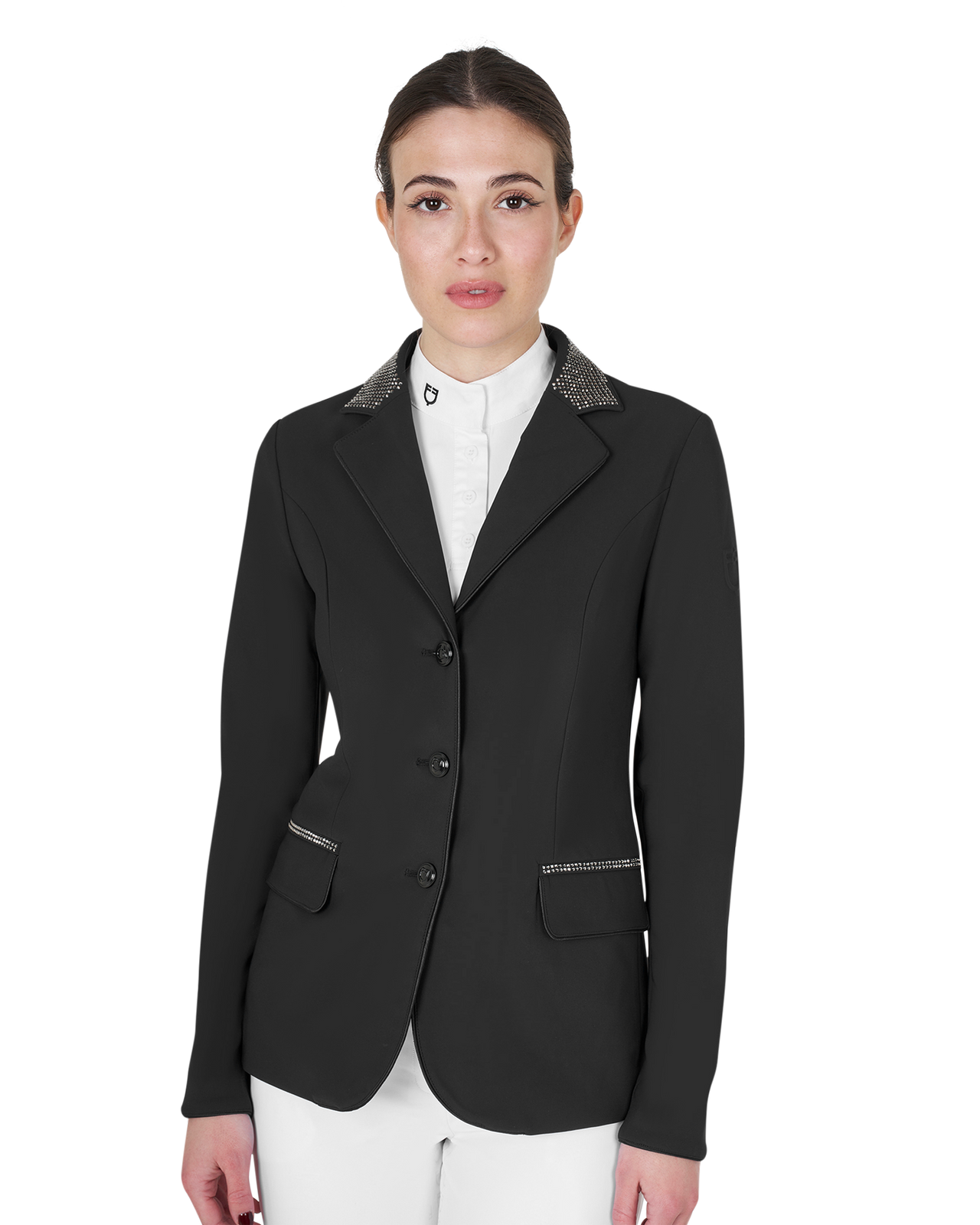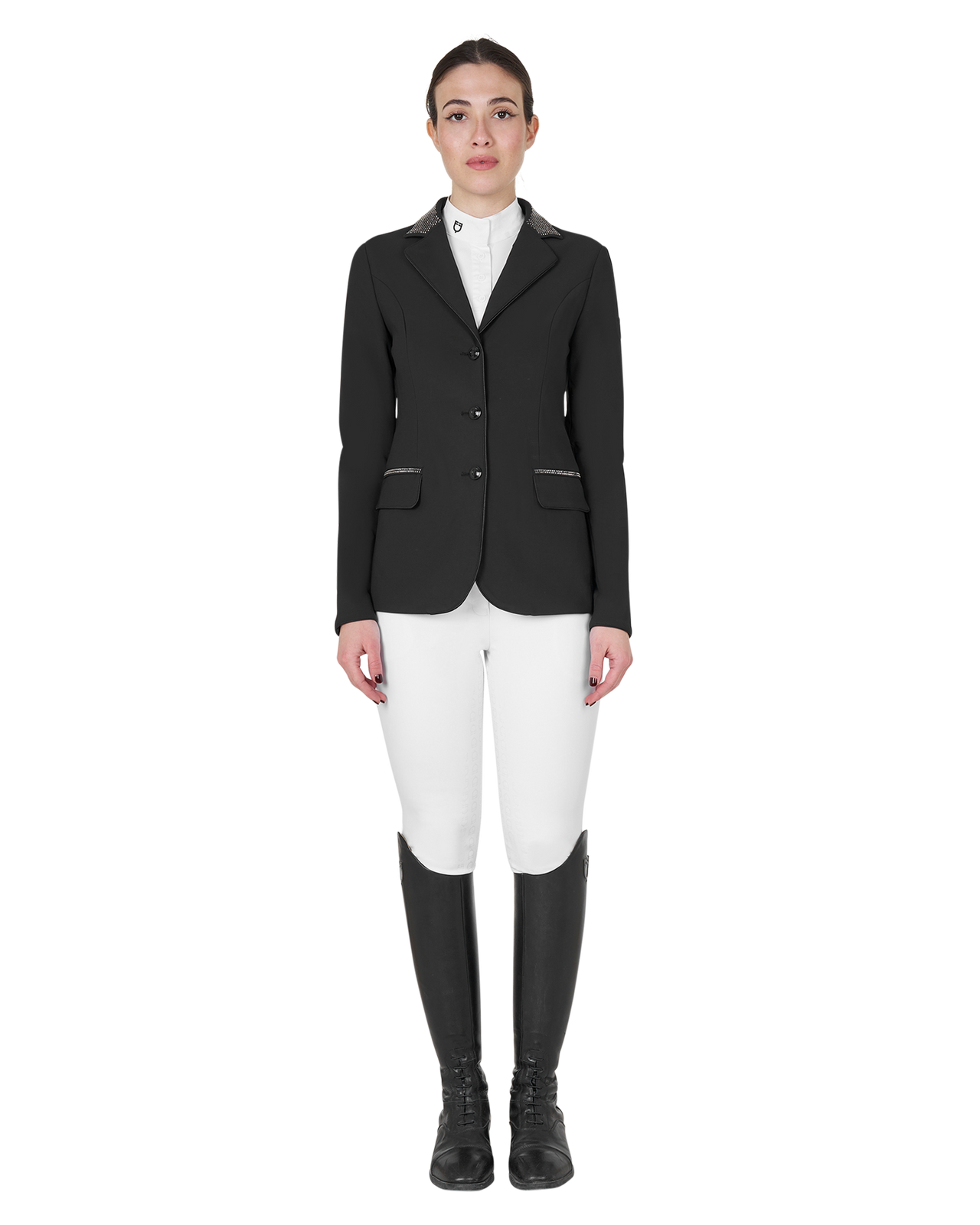 Damski frak konkursowy wykonany z innowacyjnej, oddychającej tkaniny technicznej o wysokiej odporności na wodę i wiatr, dzięki czemu zapewnia maksymalny komfort w każdych warunkach pogodowych.