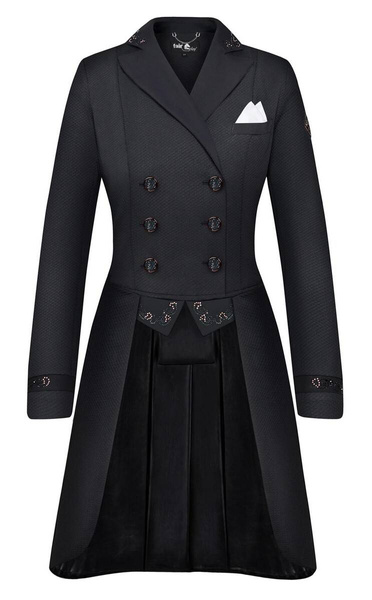 Niezwykle elegancki i pięknie skrojony długi frak ujeżdżeniowy.