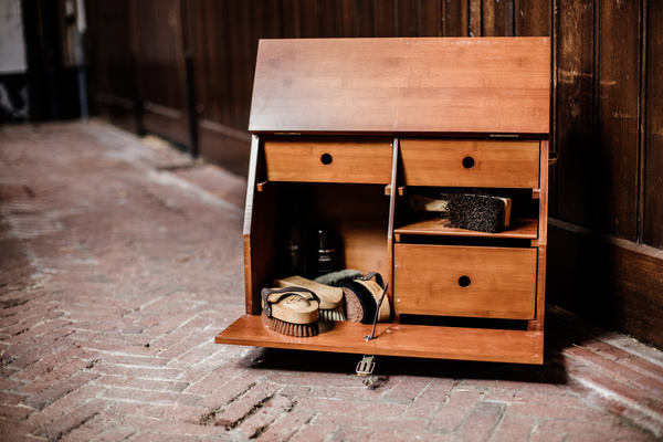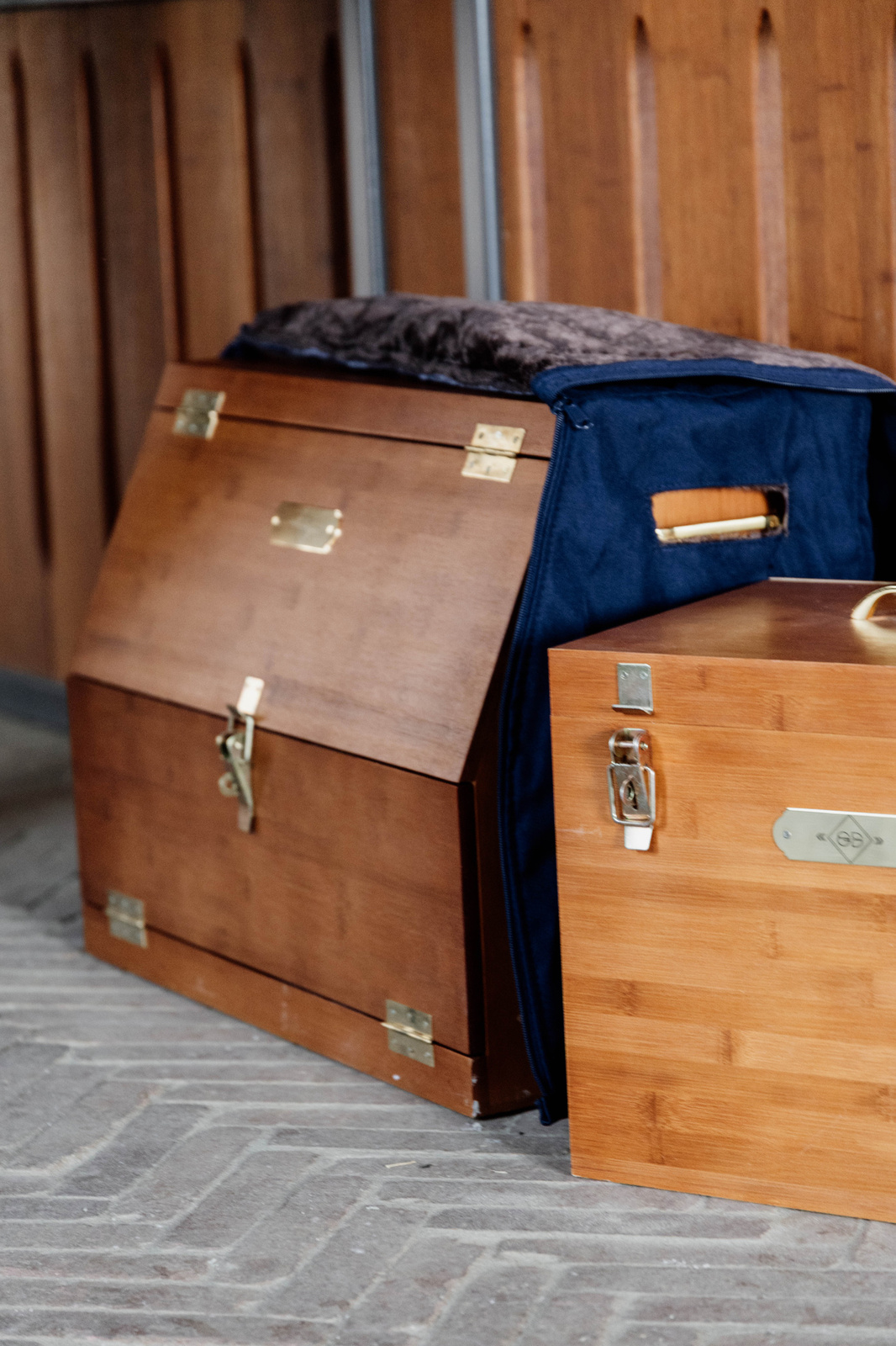 Elegancka, wysokiej jakości skrzynka do przechowywania wszystkich produktów i sprzętu pielęgnacyjnego, niezastąpiony towarzysz zarówno na zawodach, jak i w stajni.