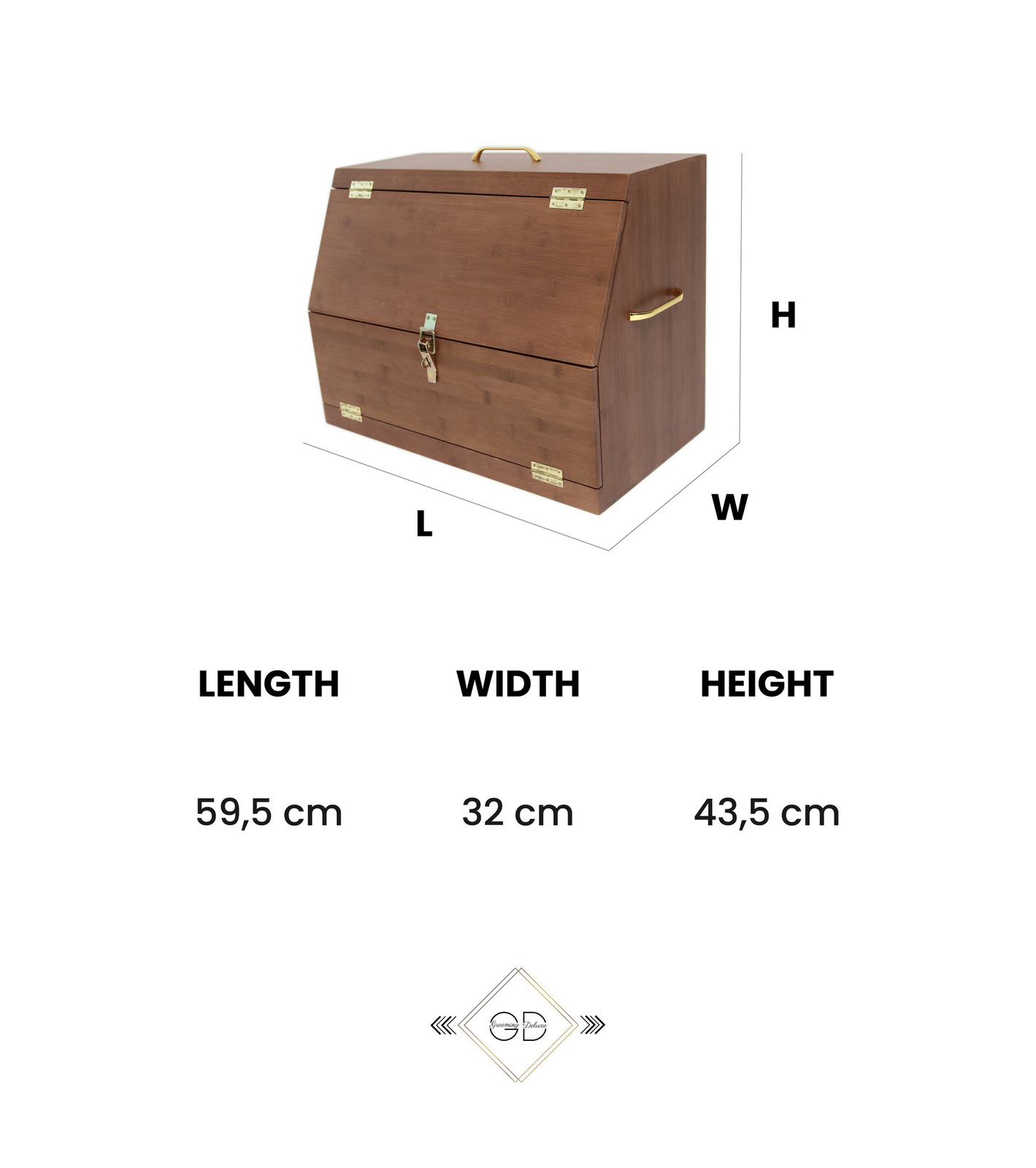 Skrzynka wykonana jest z bambusa, który cechuje się wyjątkową trwałością i odpornością na uszkodzenia, a jednocześnie jest łatwy w czyszczeniu.