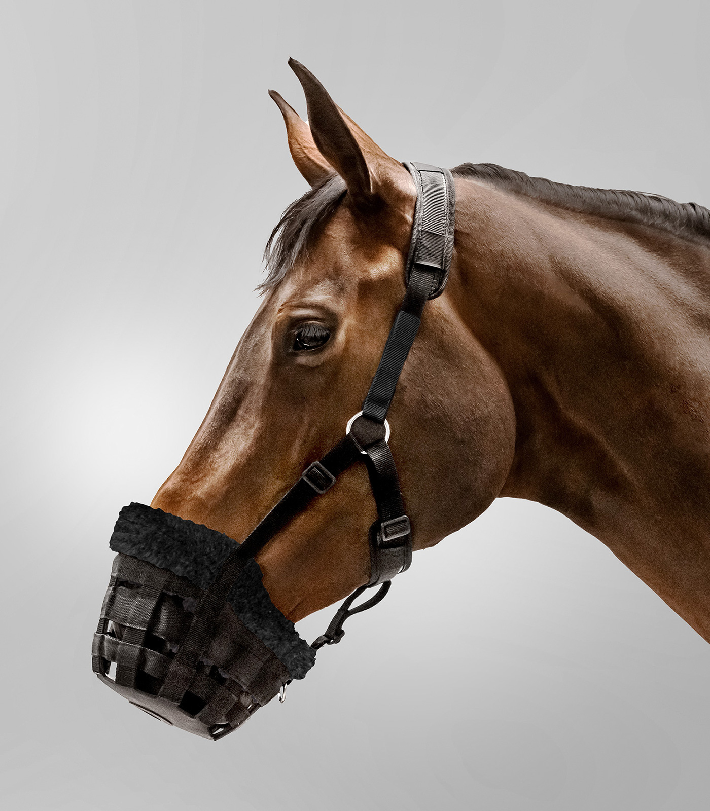 Kaganiec dla konia zapobiega nadmiernemu spożyciu trawy, a także może być stosowany w przypadku chorób, które wymagają ograniczenia dostępu do pokarmu.