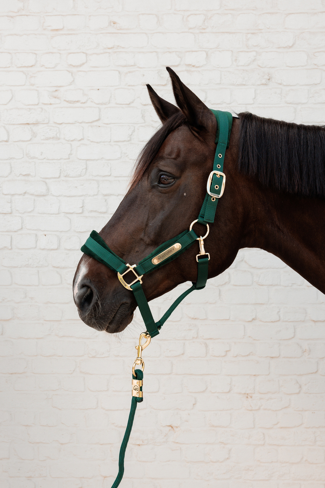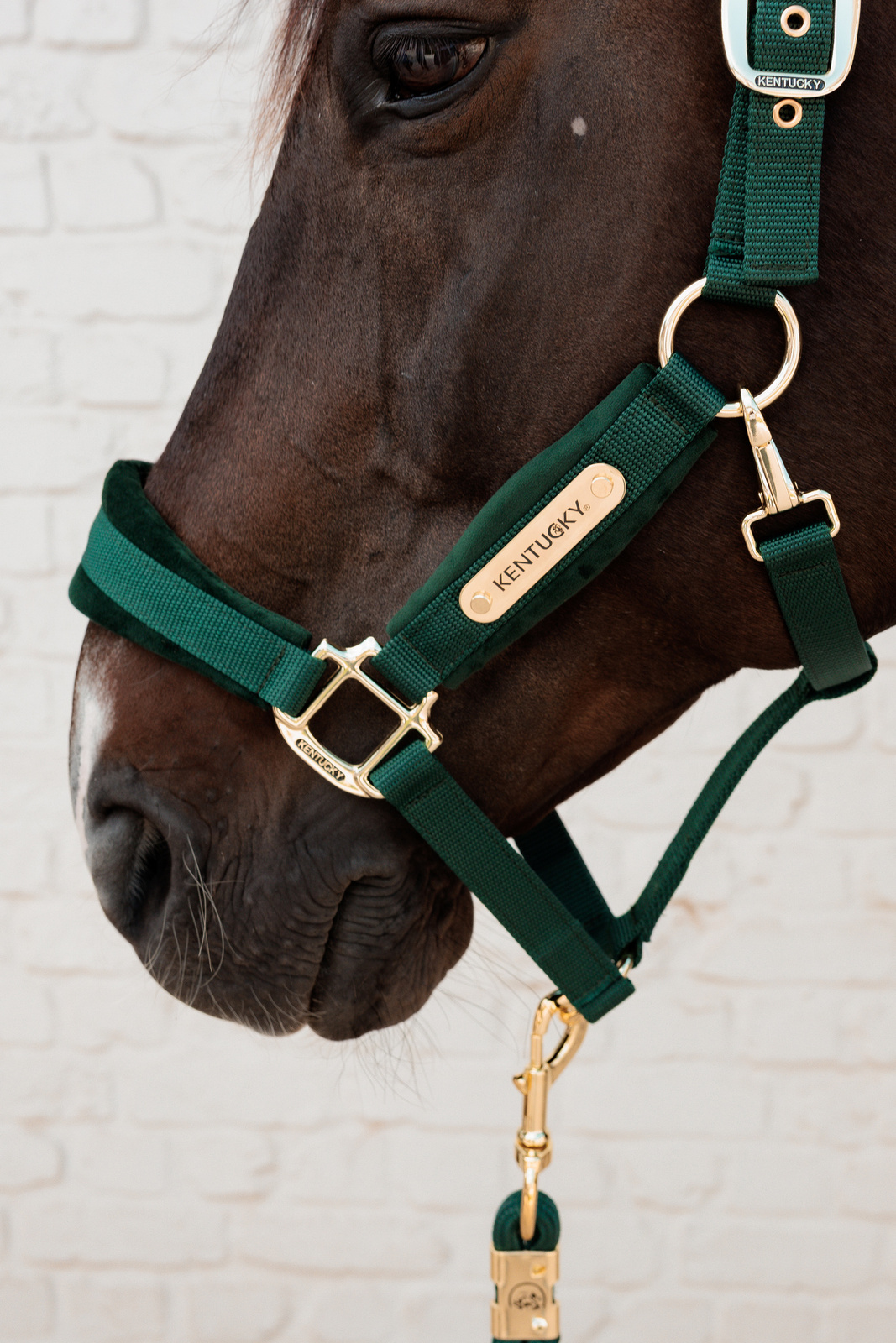 Na jednym pasku policzkowym znajduje się złota blaszka z logo Kentucky Horsewear, którą można obrócić i spersonalizować, wykonując grawer z imieniem konia lub nazwą stajni.