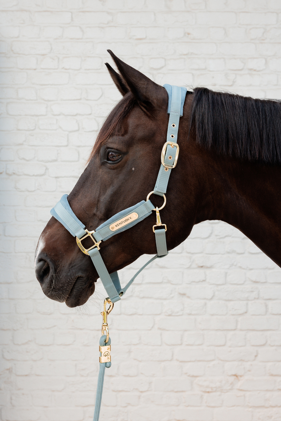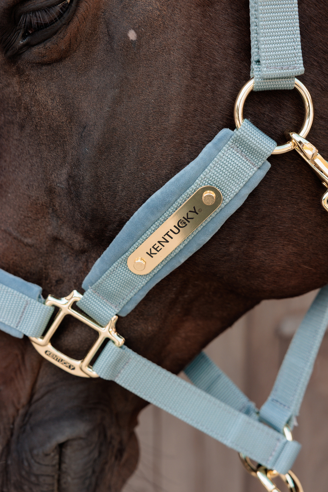 Na jednym pasku policzkowym znajduje się złota blaszka z logo Kentucky Horsewear, którą można obrócić i spersonalizować, wykonując grawer z imieniem konia lub nazwą stajni.