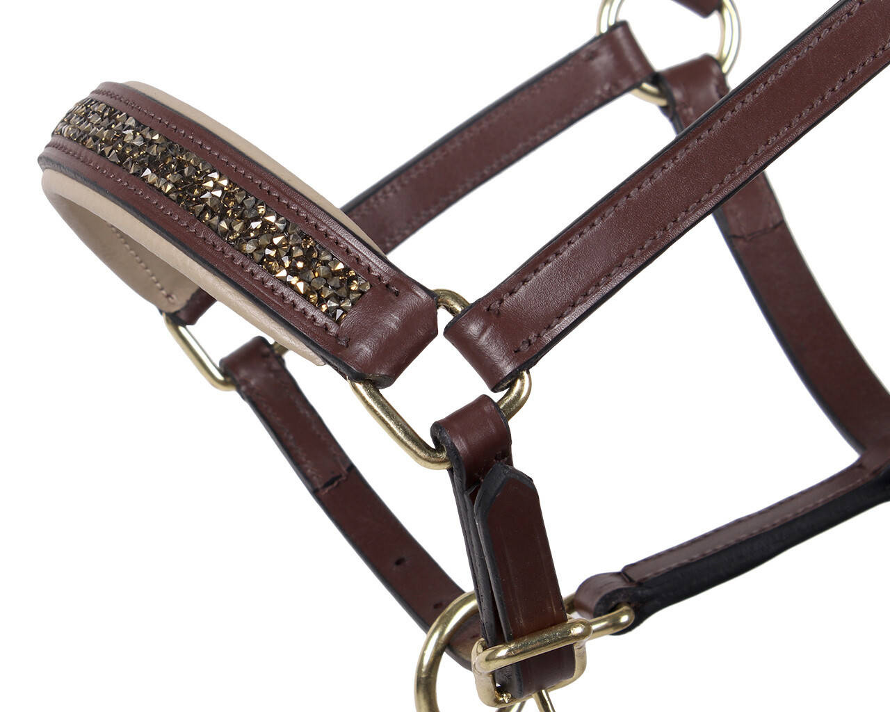 Ozdobiony rozproszonymi cyrkoniami na nachrapniku.