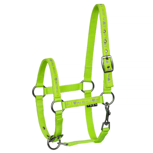 Kantar dla źrebiąt wykonany z solidnej taśmy parcianej ozdobiony taśmą ze srebrnym napisem "I love my mini".