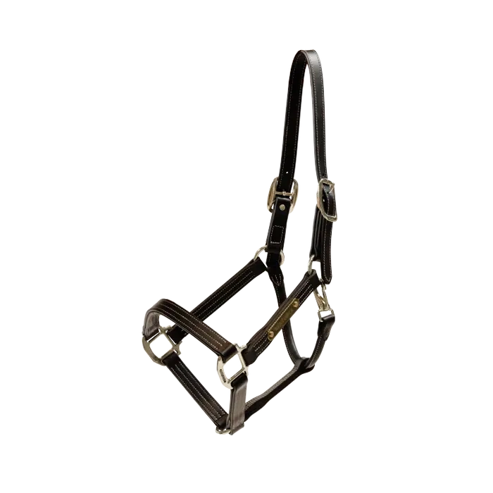 Dzięki złotym zapięciom i stylowej płytce z możliwością graweru kantar zyskuje wyjątkowy charakter.
